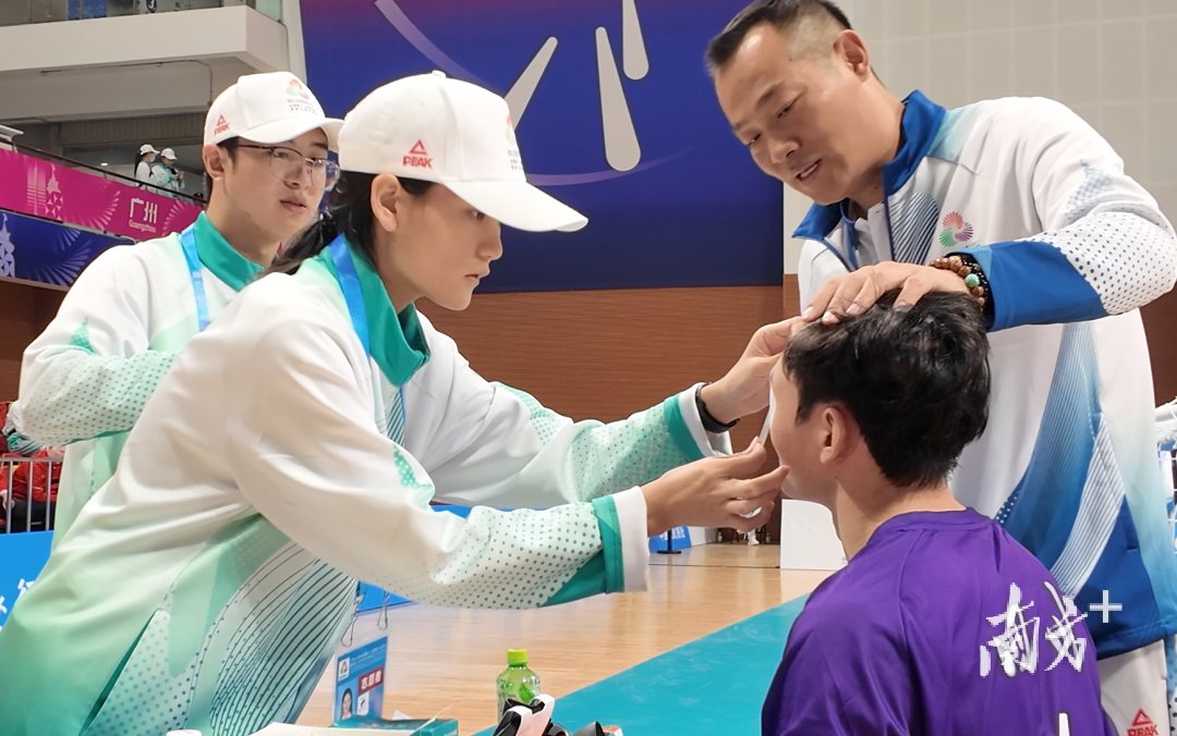 李远致是广州医科大学预防医学专业学生,他是赛道上的“移动观察哨”,与伙伴们通过观察面部表情与运动姿态细微变化判断运动员状态,精准捕捉需求信号。与李远致同为医学相关专业背景的,本届残特奥会有1820名志愿者,他们发挥学科优势,快速识别运动员的突发状况、高效协助辅具使用等,提升赛事安全性、服务专业性及人文关怀水平。