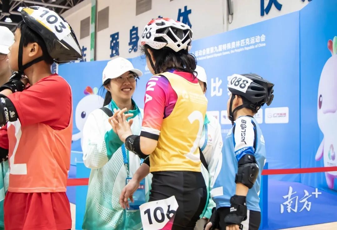 残特奥会广东赛区1.5万名赛会志愿者来自省内9个承办地市、63所高校,确保服务力量覆盖每个赛事场馆。其中2810名志愿者是服务过十五运会的“熟手”。他们以“以老带新”模式,将大型赛会的服务经验、应急处理能力和饱满热情延续至残特奥会。