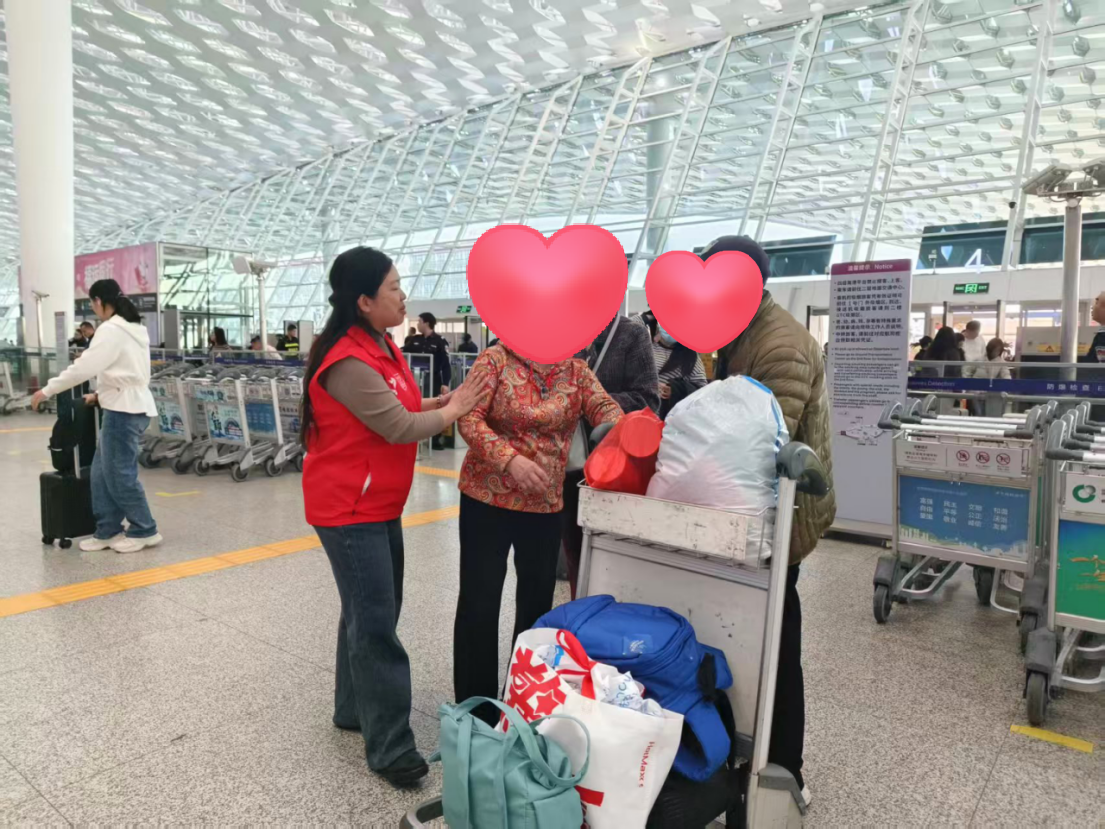 深圳机场志愿者为年长旅客提供扶弱助困志愿服务