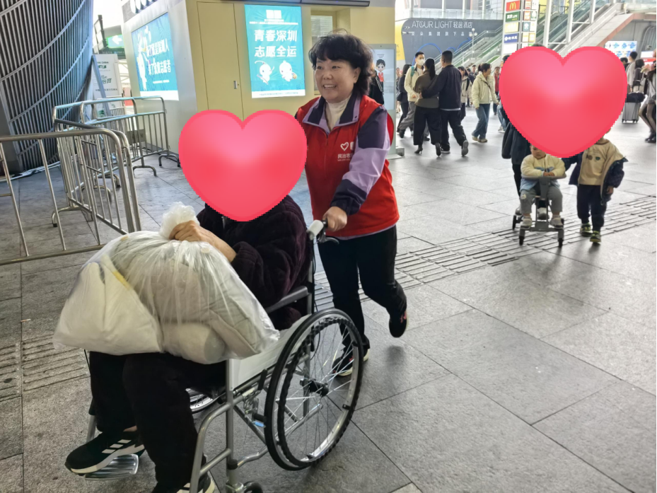 在深圳北站,一位腿脚不便的陈奶奶(化名)在车站前行进迟缓、正感为难之际,身披红色志愿者服装的工作人员主动上前,微笑伸出援手。从推行轮椅、引导至专用候车区,到耐心告知检票时间,志愿者的全程贴心陪伴,让陈奶奶倍感温暖:“这里的服务真周到,有了他们帮忙,我一个人坐车心里踏实多了。”