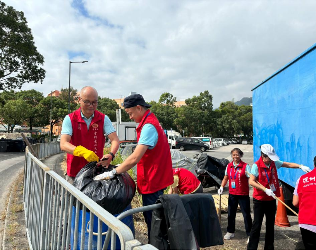 在香港北区沙头角菜园角村“清洁日”,开展垃圾清理活动