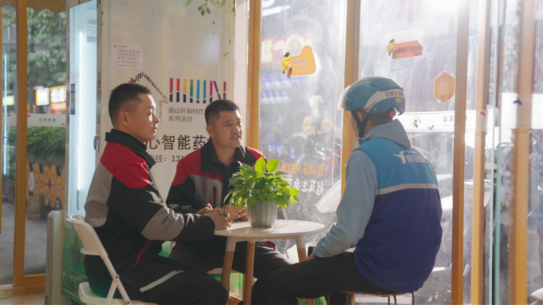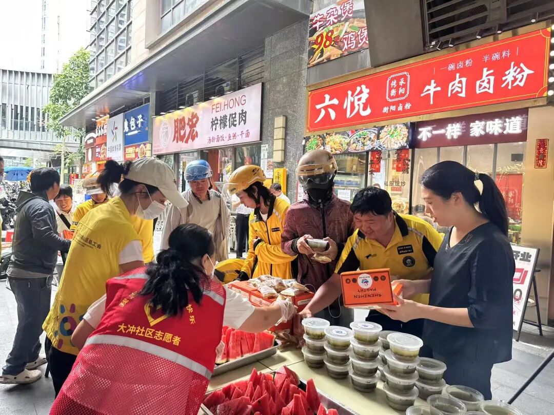 目前,大冲社区已建成3个旗舰型暖蜂驿站,并联动周边商户形成“蜂汇一条街”,提供饮水、打折优惠等多样化便利服务。