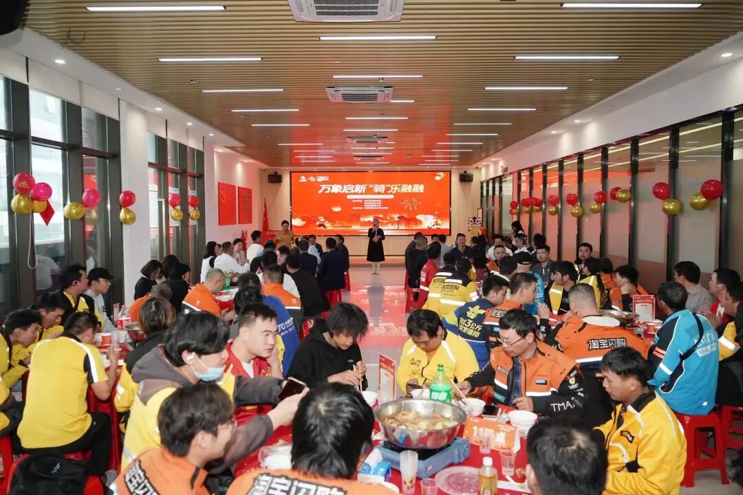 2025年春节前,社区办起了第一届年夜饭活动。来自五湖四海的骑手围坐在一起,吃盆菜、聊家常。那一年,西安小伙杨晶终于不再是独自在宿舍,煮着泡面过年。