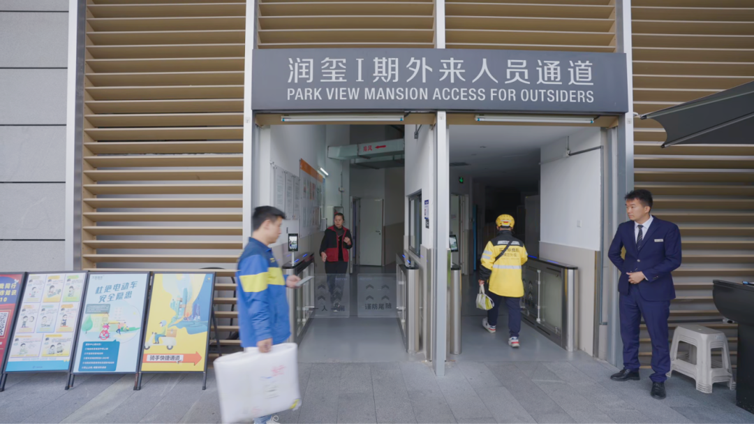 骑手反映进小区流程复杂,社区便与物业协商,在部分小区开辟“绿色通道”:扫码即可进入地下车库,乘“暖蜂电梯”直达住户,减少等待时间。