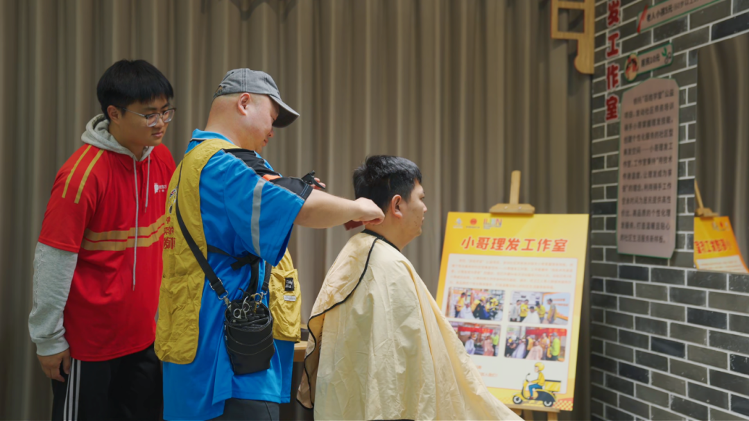 从握车把到握剪刀,已经有三个骑手小哥成功“毕业”,杨晶就是其中一个。现在,他会定期到驿站给兄弟们和附近居民义剪。