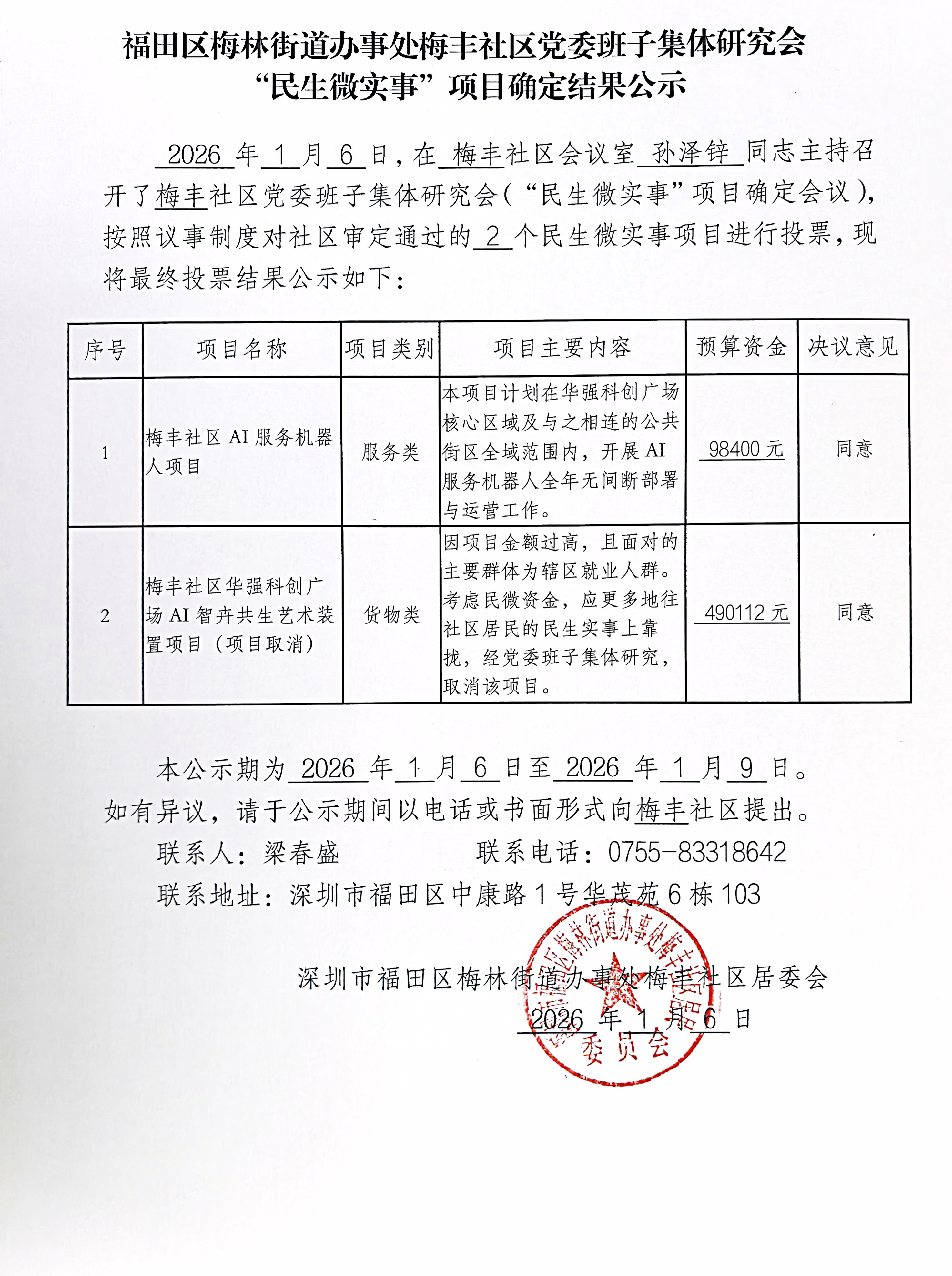 项目公示|福田区梅林街道梅丰社区“民生微实事”项目确定结果公示