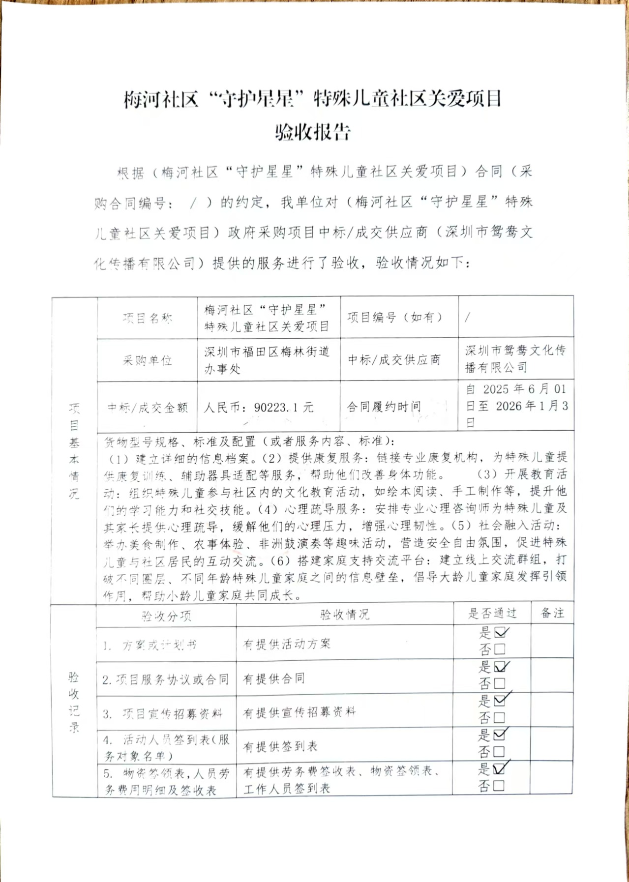 项目公示|福田区梅林街道梅河社区“守护星星”特殊儿童社区关爱项目验收报告公示