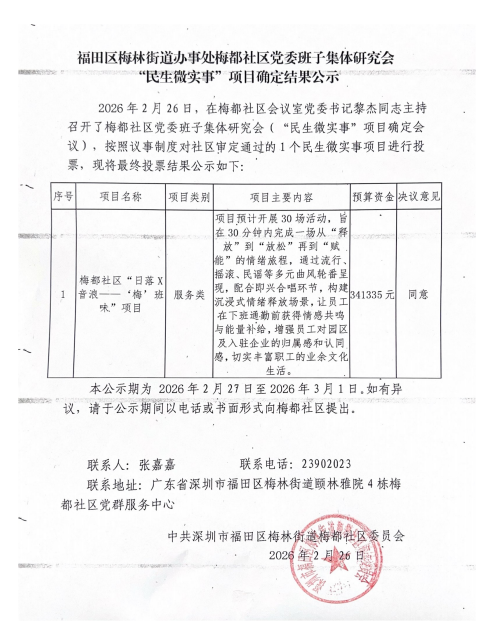 项目公示|福田区梅林街道梅都社区党委班子集体研究会“民生微实事”项目确定结果公示
