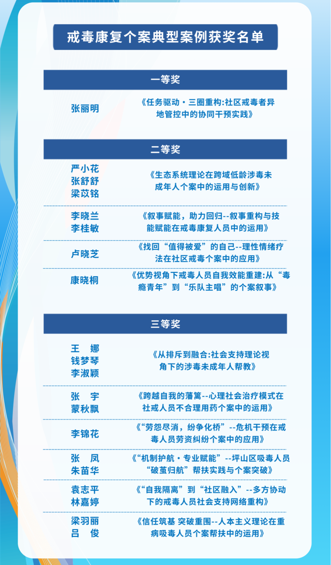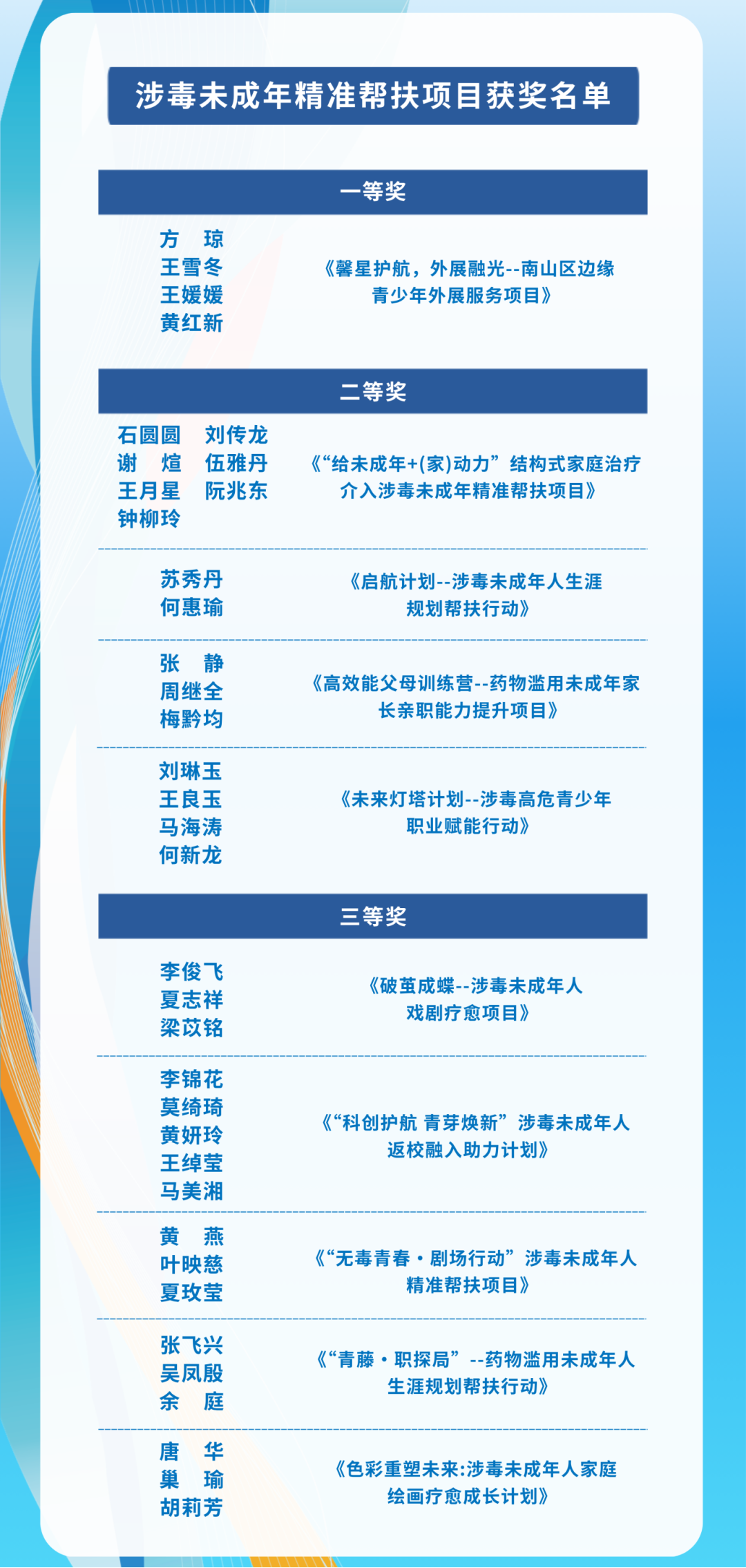 相关获奖作品将收录于《“聚势赋能、领航示范”深圳市禁毒社会工作技能大赛教案、案例及项目集》并编印成册,为禁毒社会化工作提供可复制、可推广的“深圳样板”,也为禁毒社会化治理工作实现突破注入新动能。