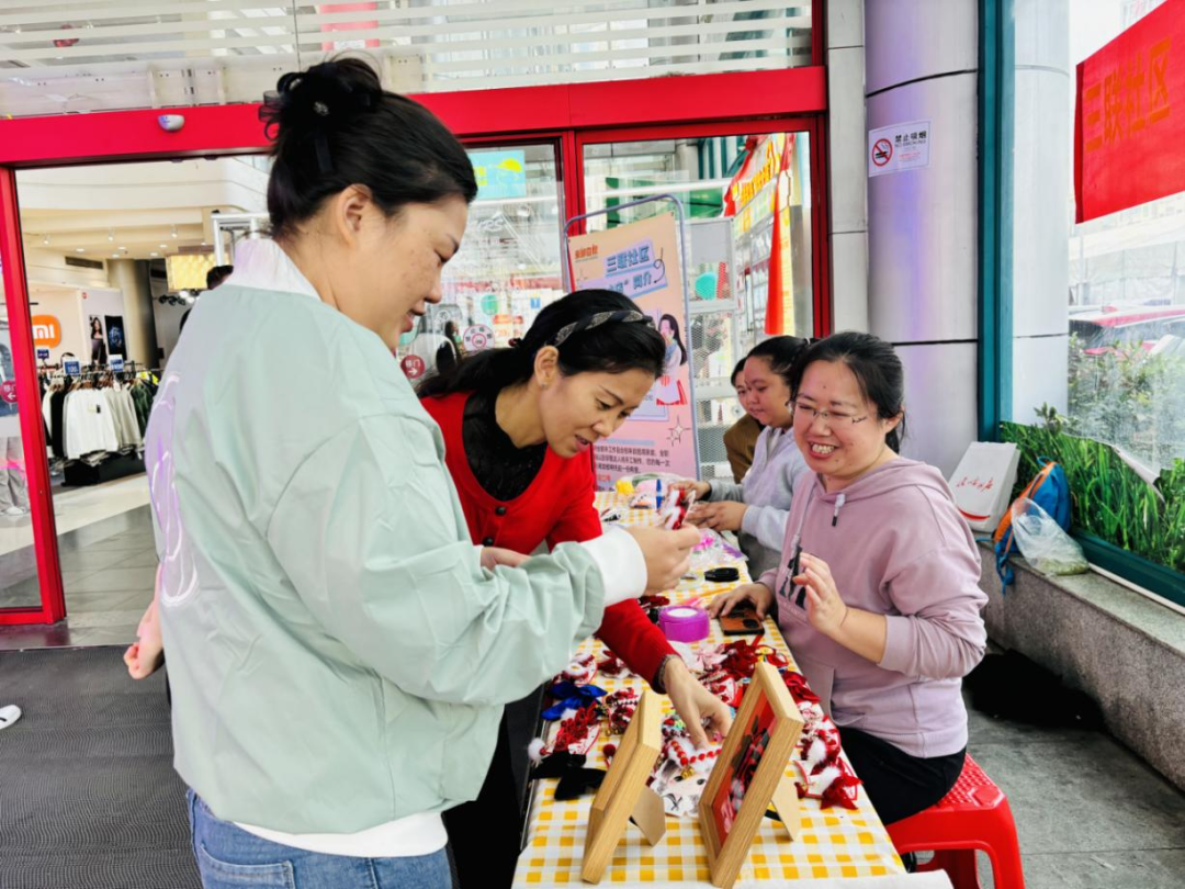 从“单点售卖”转变为“多处展销”。社区党委在社区亲邻集市、各类服务阵地中设置专属摊位,现场摆摊展示、售卖手工艺品,帮助困难群体拓销路、增收入。大润发、汇海广场等商圈企业也主动在美食节、购物节等活动中,为困难群体提供专属公益摊位,以实际行动践行社会责任,彰显爱心担当。