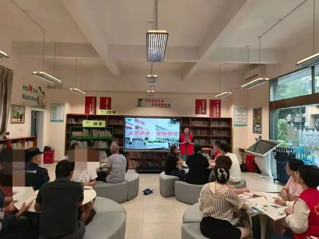 在电影放映的同时,哈尔滨工业大学(深圳)实验学校组织为安置工友带来了精彩的读书分享会。参与活动的梁师傅说:“老师讲得生动有趣,让我忘记了外面的狂风暴雨。”