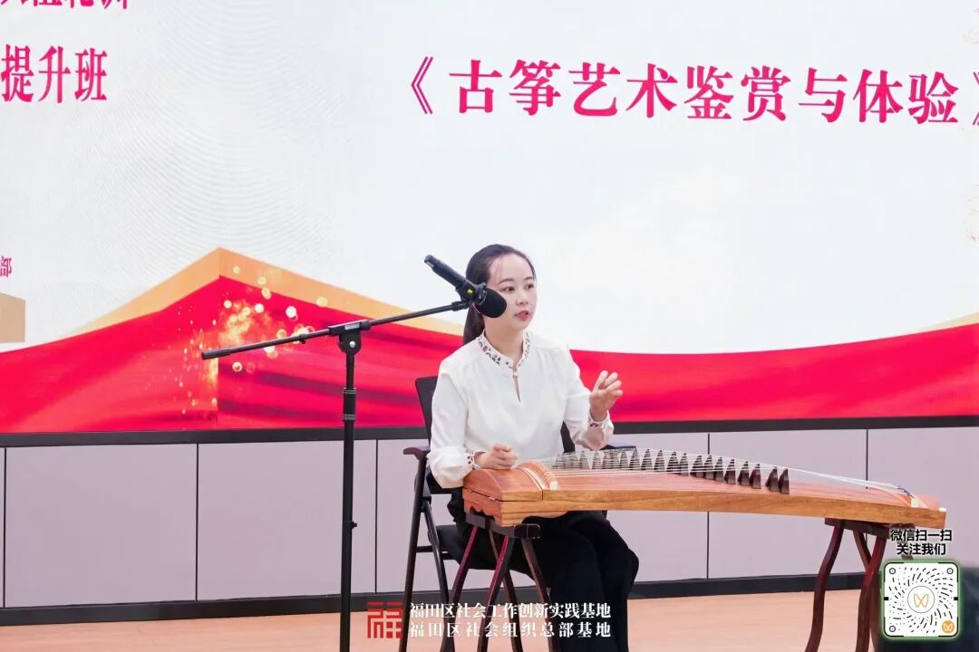 为缓解基层工作压力,午间时段特别安排古筝、古琴艺术鉴赏。中国民族管弦乐团会员夏玫老师现场演奏互动,古琴广陵派第十四代传人文靖老师讲解古琴文化,穿插趣味游戏环节,让学员在传统文化熏陶中放松身心,潜移默化增强队伍凝聚力。