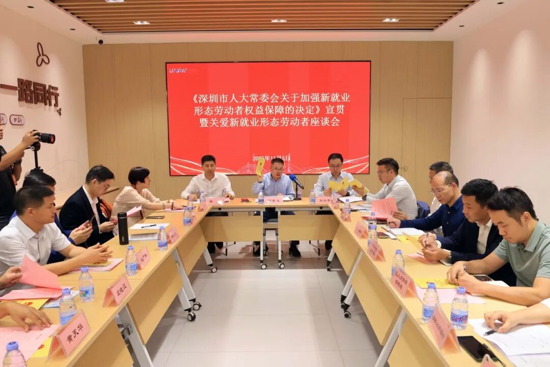 座谈会上,市人大常委会社会建设工委对《深圳市人大常委会关于加强新就业形态劳动者权益保障的决定》深入解读,为新就业形态劳动者权益保障工作明确方向。