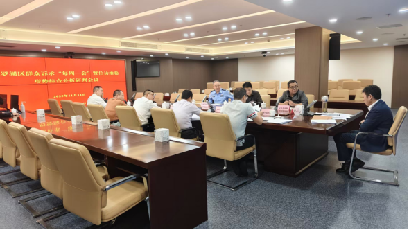 11月11日,罗湖区委副书记、政法委书记黄生文主持召开区群众诉求综合分析研判会,分析研判宣传、政法、政数、信访、公安、法院等各部门各渠道受理的群众诉求案件,并针对家庭纠纷、物业纠纷、经济纠纷等重点个案、类案进行部署,强调要加强苗头性问题预警,加大积案化解力度,深化部门联动协作,推进矛盾纠纷实质化解。