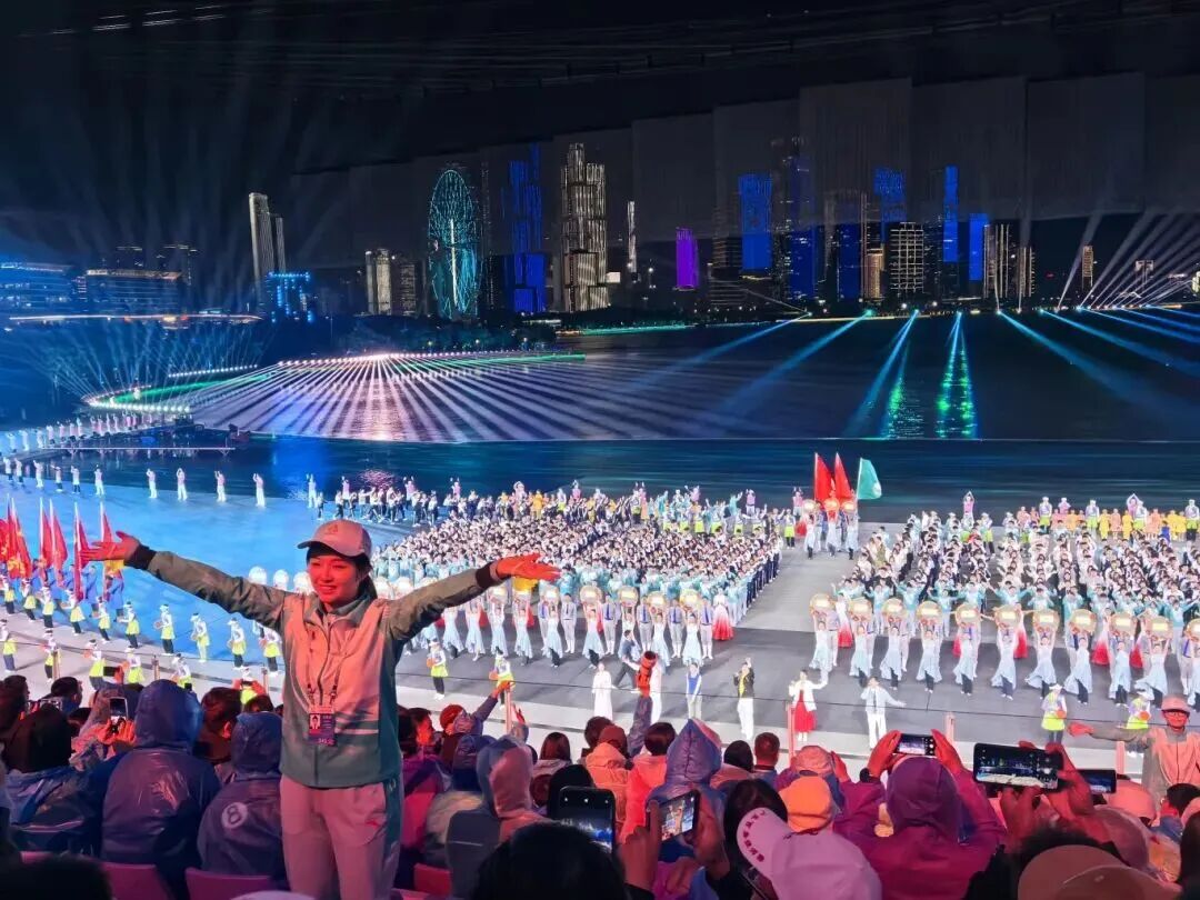 “看台区的志愿者们更是成为了现场氛围的“催化剂”。他们随着音乐的节奏跳跃、欢呼,带动着观众席上的气氛不断升温。深圳大学马莉说:“作为闭幕式看台志愿服务人员,我们共运物资、带动人浪、互动表演、氛围营造,每次用星星灯点亮现场,将热忱化作认可与掌声,都是青春与盛会的双向奔赴,这份与观众同心、与团队同行的青春记忆让我深深感受到,志愿精神藏在点滴行动里。”