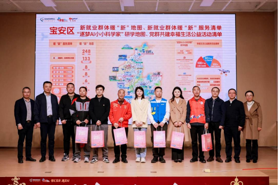 1月22日,宝安区以区街联动、党群共建形式,启动“智汇宝安·遇见AI”党群共建“幸福生活市集”暨“AI在党群服务中心”为民惠民服务活动。活动发布涵盖研学路线、暖“新”服务等民生事项的新春“两图两清单”,并推出全市首个党群服务中心AI应用场景展。现场举行共建签约仪式,明确在智美·汇志园区党群服务中心嵌入式建设“智汇宝安·AI直播夜校”。现场设置AI书法、3D打印等十余个互动摊位,市民可体验智能健康检测、“宝AI党群”数字人政策讲解等创新服务。此次活动让市民近距离感受科技与年味交融的魅力,助力基层治理与民生需求精准对接。