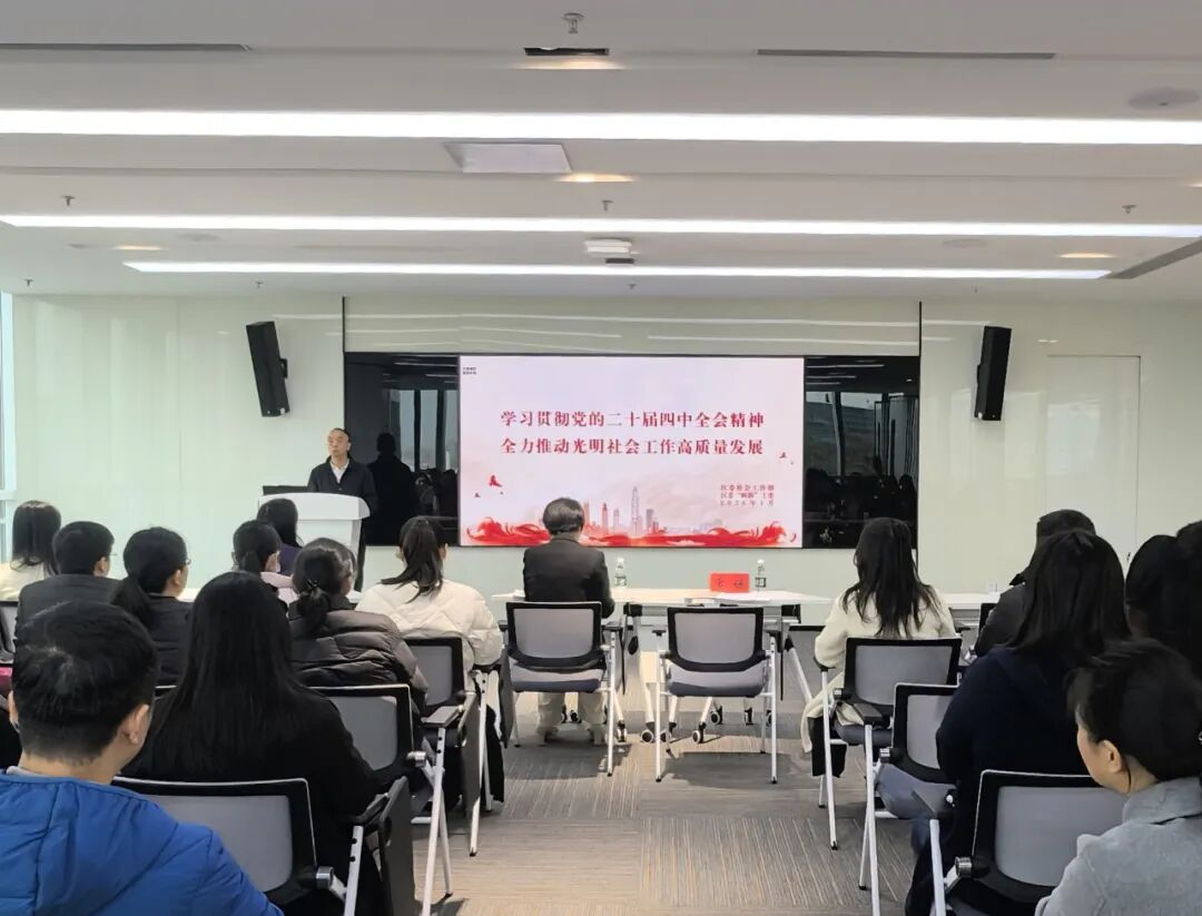 1月22日,光明区举办新兴领域党的二十届四中全会精神专题宣讲会。区委社会工作部主要负责人作主题宣讲。区委社会工作部领导班子成员、各街道“两新”党工委、各直属(行业)党委相关负责同志,以及新兴领域党组织书记、党务工作者、新就业群体党员代表等共计100余人参加学习。宣讲会深入阐释了党的二十届四中全会的精神实质与“十五五”目标任务,详细解读了关于社会工作及新兴领域党建的重要部署。同时,结合光明区实际,通过案例与数据,重点介绍了推进新兴领域党建、服务新就业群体、赋能经济发展等方面的具体举措与成效,系统展现了高质量党建引领发展的实践路径。