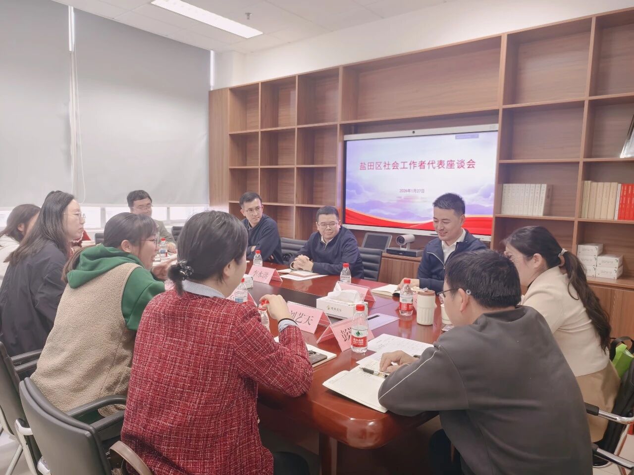 1月27日下午,盐田区委社会工作部组织区优秀专业社工代表召开座谈会并开展春节节前慰问活动。会前,专业社工代表现场参观区委社会工作部宣传展板,了解社会工作部门职能定位和社会工作行业发展情况。会上,专业社工代表逐一交流发言,介绍开展专业社会工作服务的感受、职业发展现状及存在困难,并积极建言献策,区委社会工作部副部长李水洪代表区委社会工作部,对专业社工代表以及全区一线社工的辛勤付出表示感谢,希望大家能够继续聚焦民生服务和基层治理需求,不断提升专业服务质效,建强社会工作人才队伍。