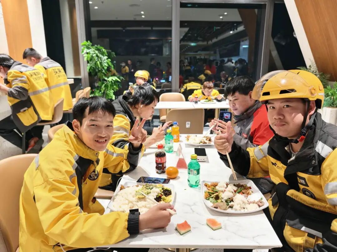 100名来自美团、淘宝闪购等平台的外卖骑手齐聚一堂,卸下奔波疲惫,共赴团圆之约。