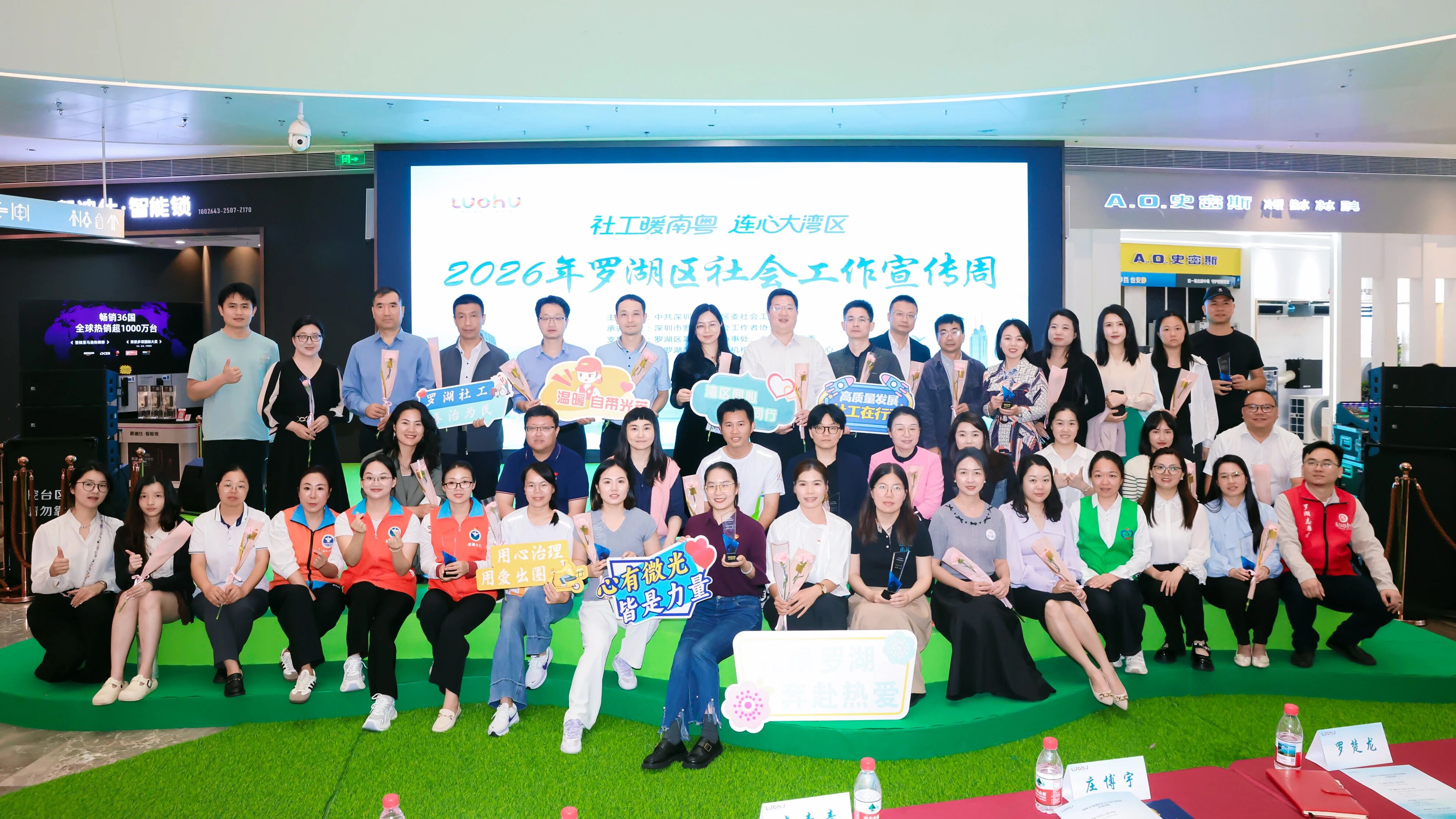 3月19日,罗湖区第十九届社会工作宣传周主会场活动在KKTIME京基百纳时光购物中心启动,宣讲中办、国办《关于推进社会工作专业人员队伍建设的意见》精神,围绕“社工暖南粤 连心大湾区”为主题开展“社工知识大讲堂”“社工力量典型案例展示”等活动。活动现场举行2025年度罗湖区社会工作领军人才颁奖仪式,共有12名在社会工作领域作出突出贡献的优秀社工获此殊荣。5名领军人才共话社会工作高质量发展,以“社工TALK”开启2026年社会治理的对话新篇章。罗湖区“社工服务集市”首次引入行业协会商会、专业志愿服务队伍参与社工互动,打造“专业社工+行业协会商会+专业志愿服务队”社会服务体系。
