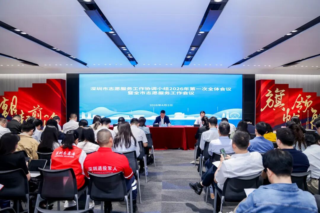 4月2日上午,深圳市志愿服务工作协调小组2026年第一次全体会议暨全市志愿服务工作会议在前海召开,粤港澳大湾区志愿服务协同发展项目孵化基地在前海国际人才港正式揭牌启用,标志着深圳志愿服务在湾区协同与国际化发展上迈出关键一步。市志愿服务工作协调小组召集人、市委社会工作部主要负责同志出席会议并讲话。市志愿服务工作协调小组各成员单位、各区党委社会工作部门、前海管理局及市、区志愿服务联合会负责人,2025年度深圳志愿服务优秀案例获奖代表等参加会议。