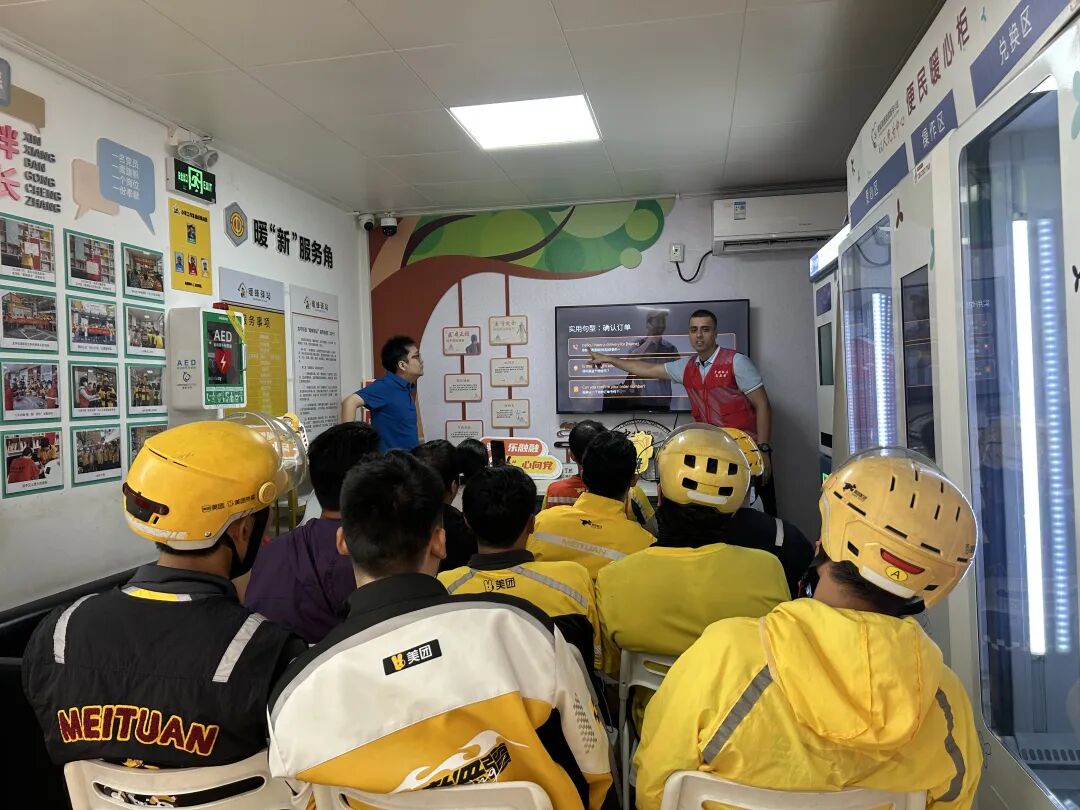 “以前遇到外国顾客只能靠手势比划,现在学到了实用句子,以后送餐肯定更从容!”骑手小伍虽然发音还带着点乡音,但笑容自信,现场笑声与掌声不断,学习氛围异常热烈。