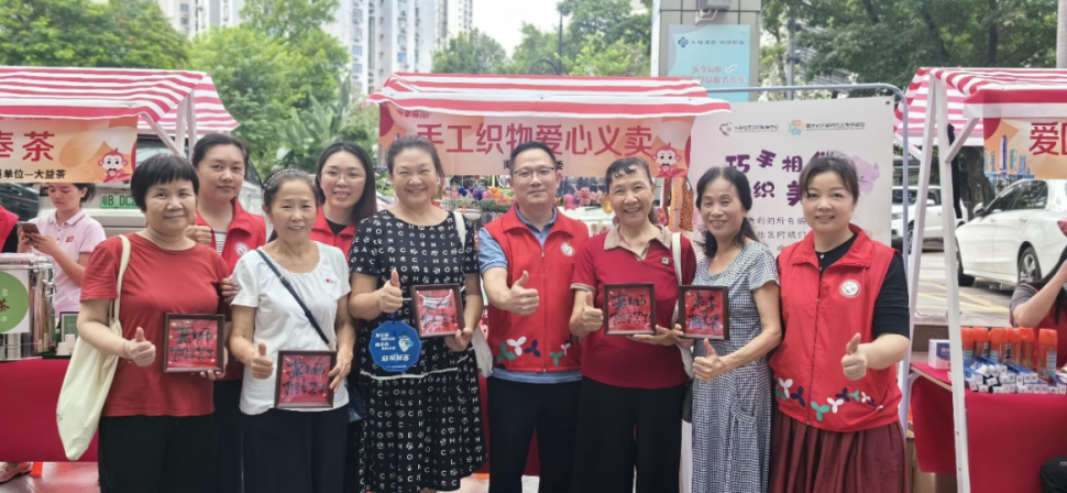 如何让志愿服务不仅“一时热”,更能“长久暖”?南天社区党委推动服务队走“造血式”志愿服务路线,引导其将传统钩织技艺与现代审美结合,在保留手工温度的同时,设计制作出花束、挂饰、玩偶、杯套等兼具实用性与观赏性的文创产品,并通过周末义卖、党员服务市集、社区大型活动等多元展示平台推向市场,让指尖手艺真正转化为实实在在的爱心善款。