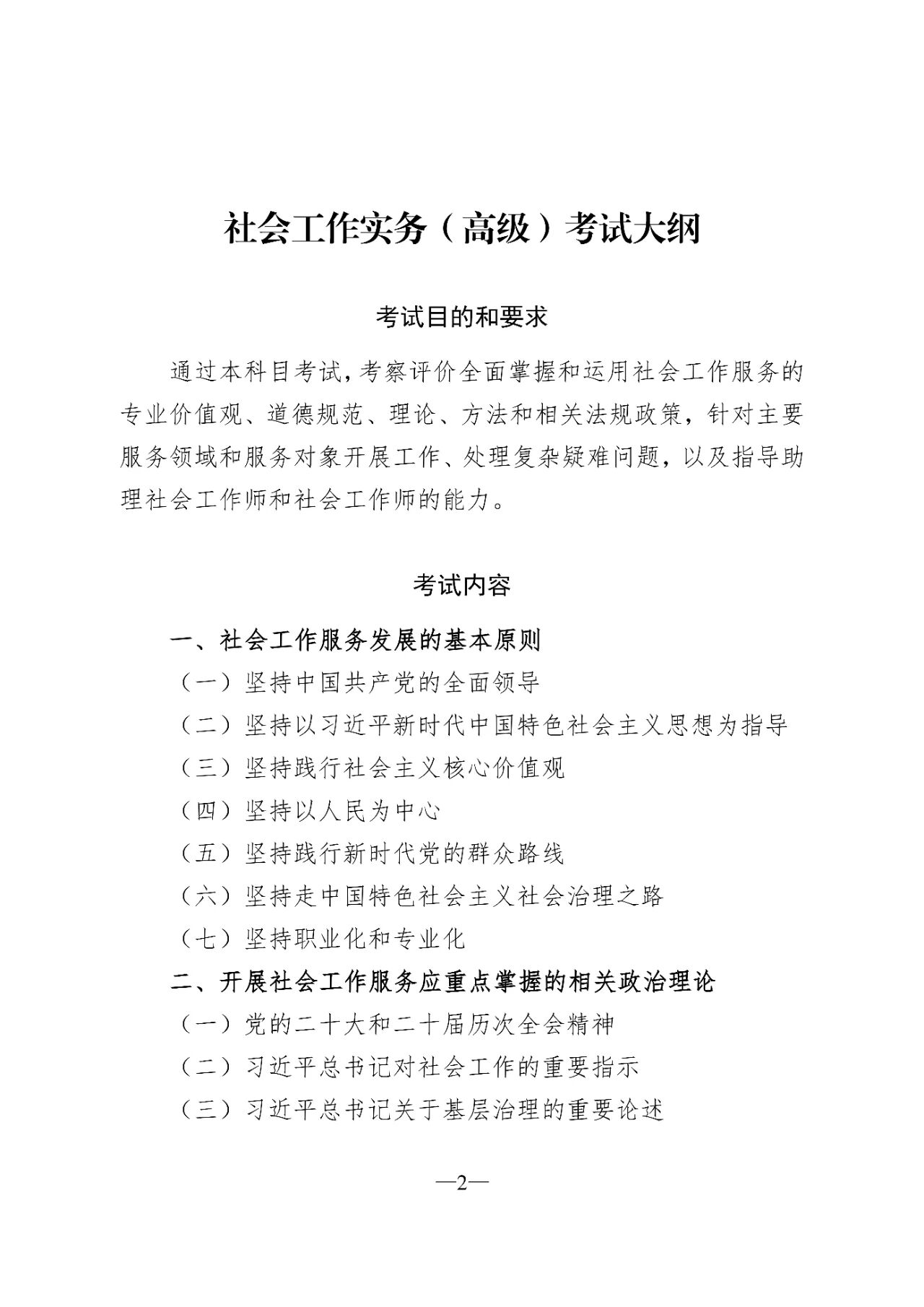 高级社会工作师职业资格考试大纲(2025年)