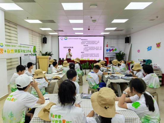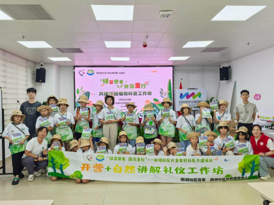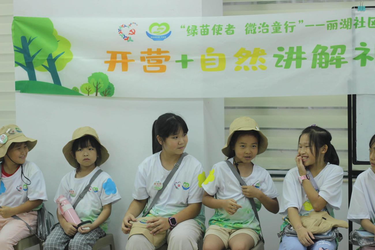 2025年8月4日下午,由龙岗区吉华街道社区 “民生微实事·大盆菜” 项目专项经费资助,丽湖社区党委主办、丽湖社区党群服务中心协办的 “绿苗使者·微治童行” 儿童友好社区共建项目开营暨自然讲解礼仪工作坊活动开启,25名社区儿童议事成员齐聚,在互动、学习与自然探索中,拉开社区共建新篇章。