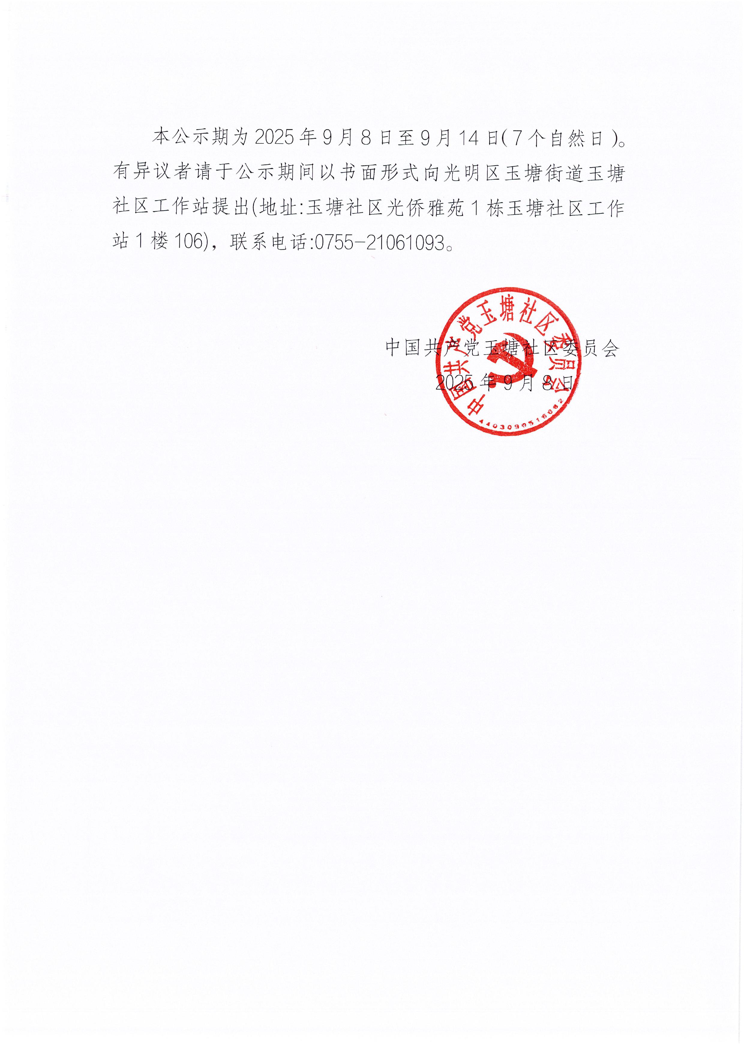项目公示|光明区玉塘街道玉塘社区2025年第二批“民生微实事”项目确定结果公示