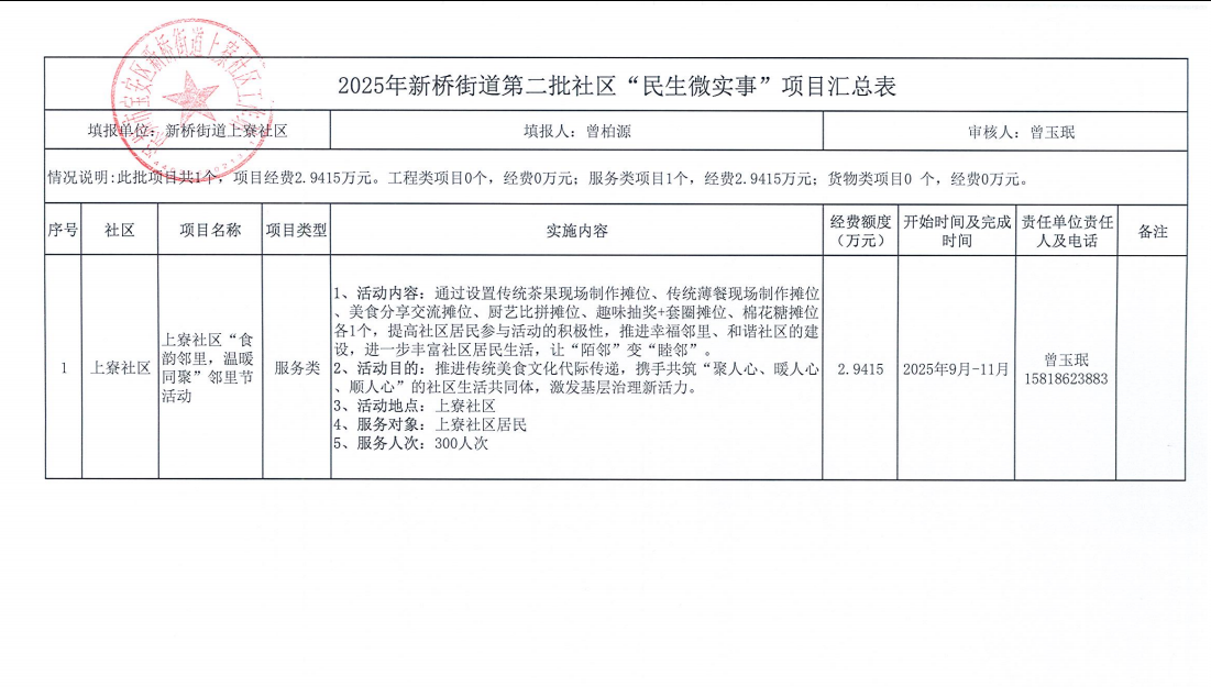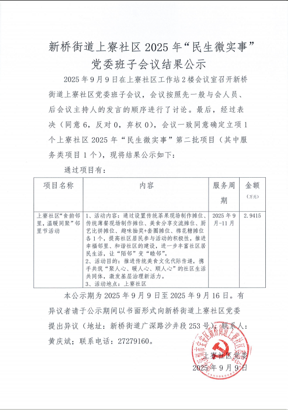 项目公示|宝安区新桥街道上寮社区2025年“民生微实事”第二批实施项目公布