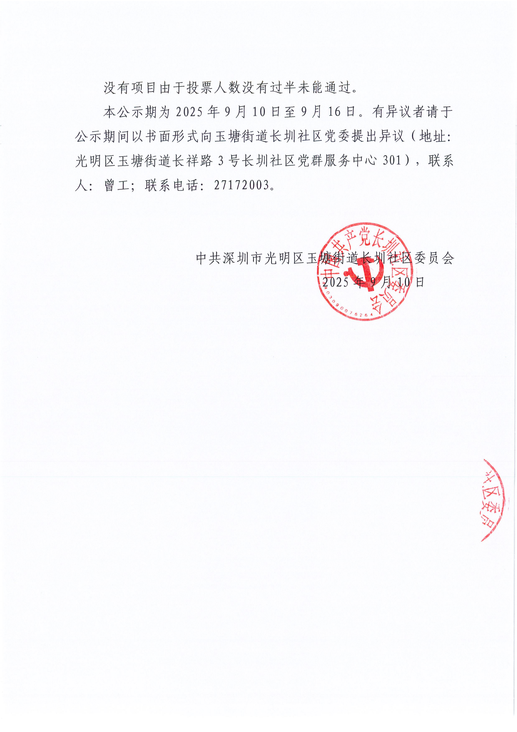 项目公示|光明区玉塘街道长圳社区2025年第二批次“民生微实事”项目确定结果公示