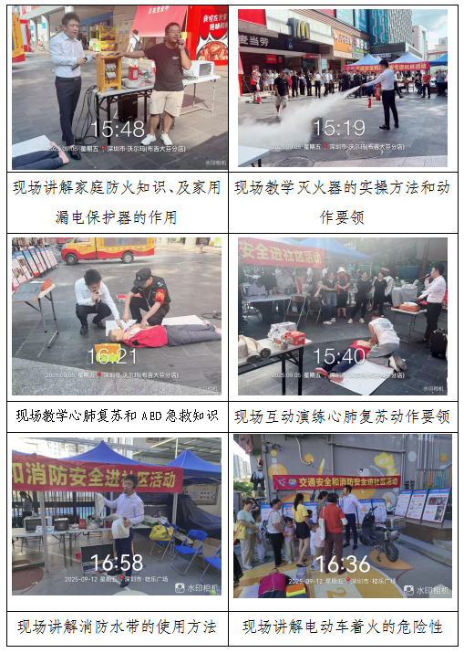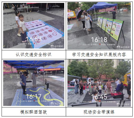 为帮助居民了解、重视并掌握交通及消防安全知识,进一步提升居民的安全意识和自护自救能力,大芬社区开展四场交通安全和消防安全进社区活动,于2025年9月5日在大芬社区沃尔玛广场、9月12日在桔子坑儿童口袋公园(桔子坑大芬第一幼儿园门口) 分别开展一场消防安全宣传活动,于9月10日在大芬社区大芬美术馆门口、9月11日在智民实验学校分别开展一场交通安全宣传活动。