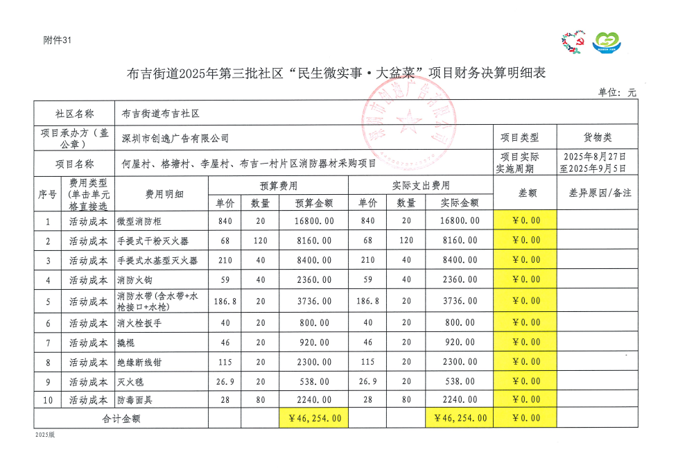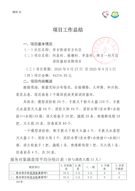 项目公示|龙岗区布吉街道布吉社区2025年何屋村、格塘村、李屋村、布吉一村片区消防器材采购项目“民生微实事”项目结项公示