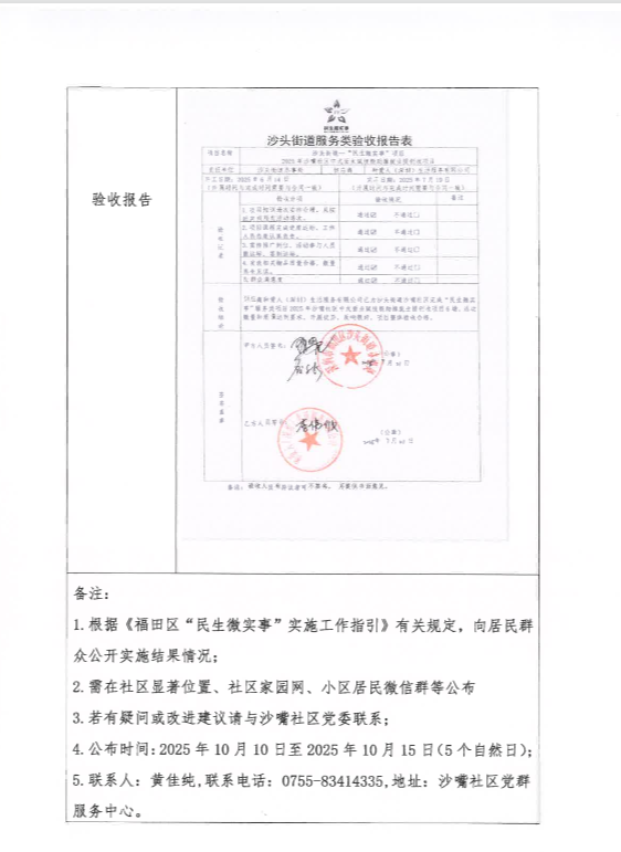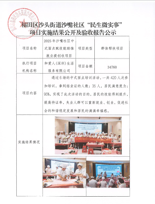项目公示|福田区沙头街道沙嘴社区2025年沙嘴社区中式面点赋技能助推就业提创收项目“民生微实事”项目实施结果公开及验收报告公示