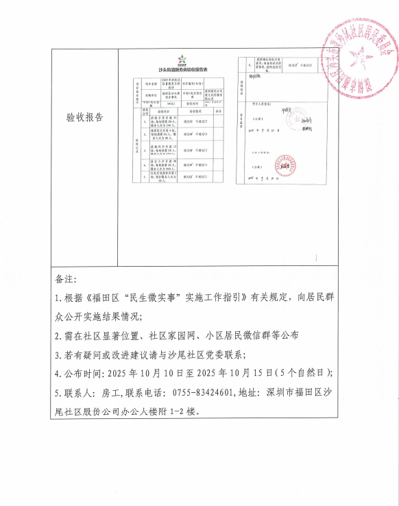 福田区沙头街道沙尾社区“民生微实事”项目实施结果公开及验收报告公示 - 夏令营.pdf
