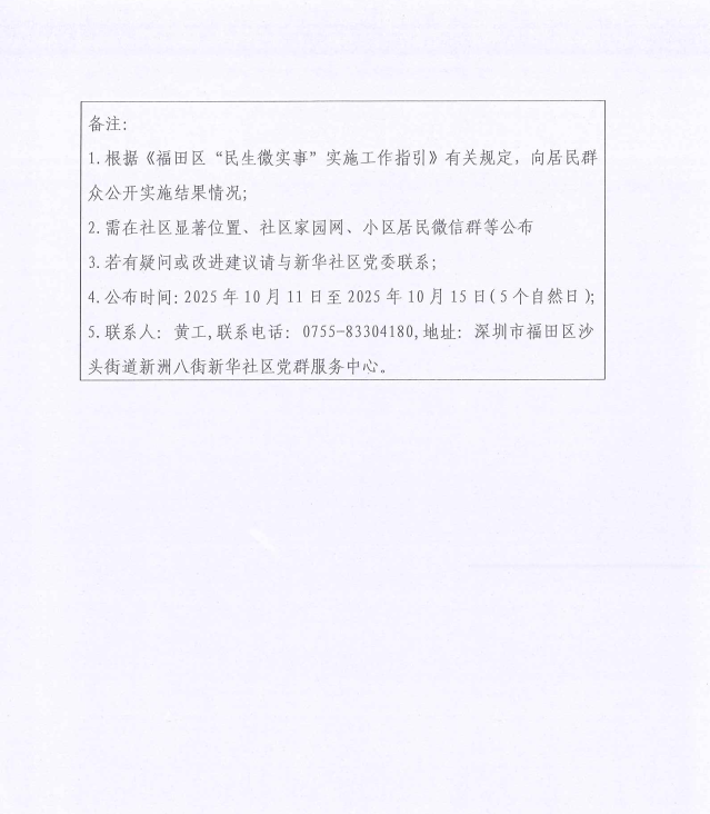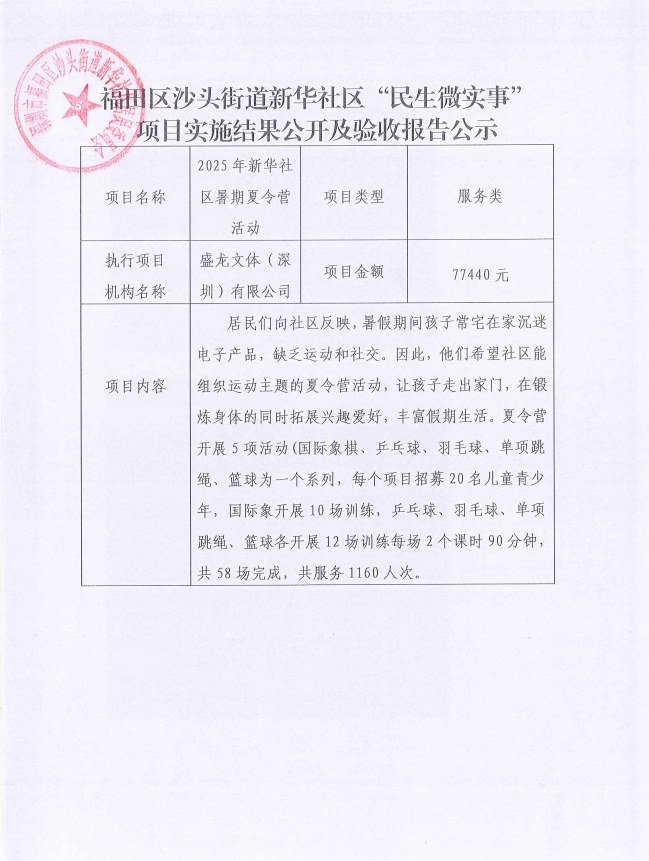 项目公示|福田区沙头街道新华社区2025年新华社区暑期夏令营活动“民生微实事”项目实施结果公开及验收报告公示