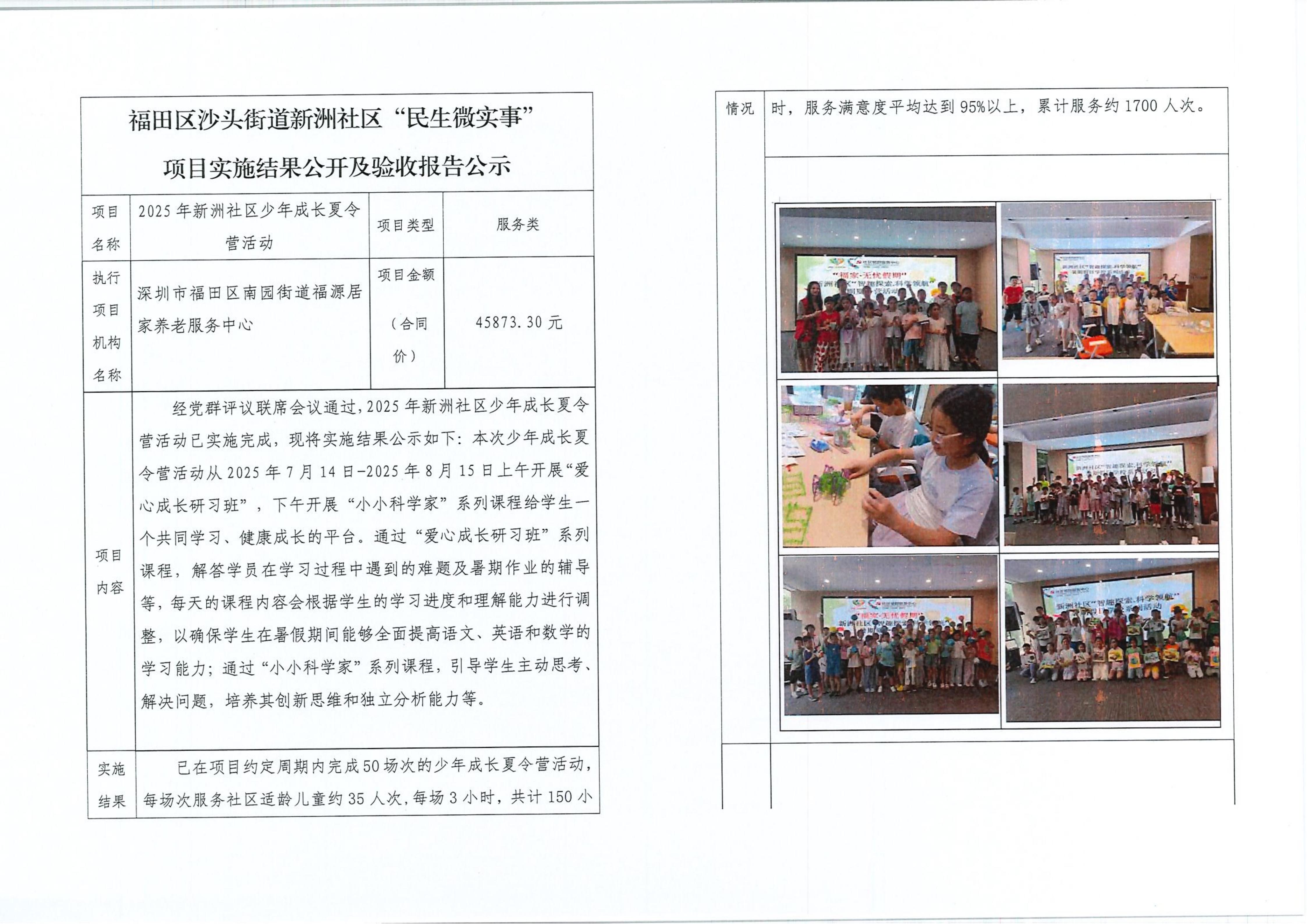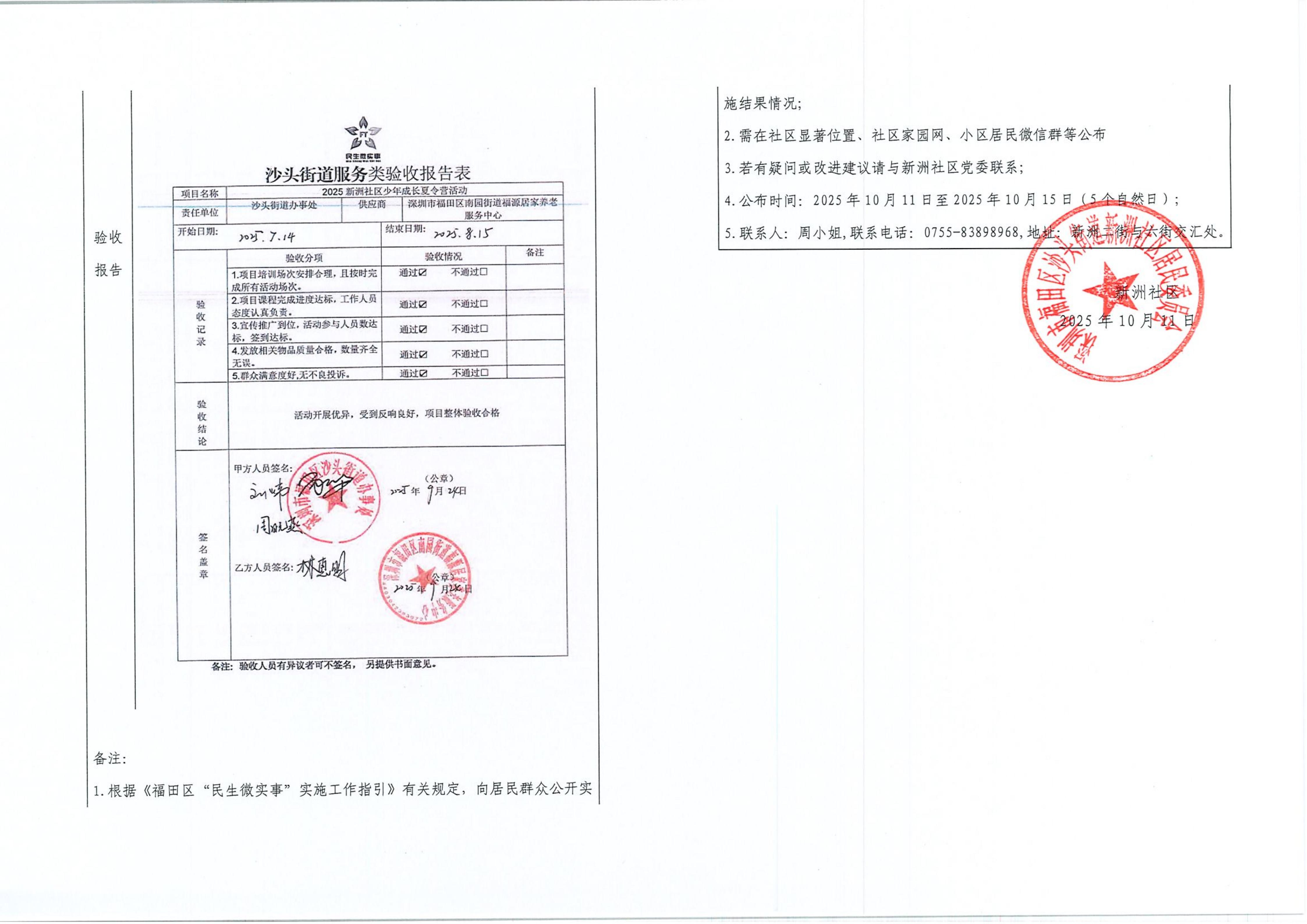 项目公示|福田区沙头街道新洲社区2025年新洲社区少年成长夏令营活动“民生微实事”项目实施结果公开及验收报告公示