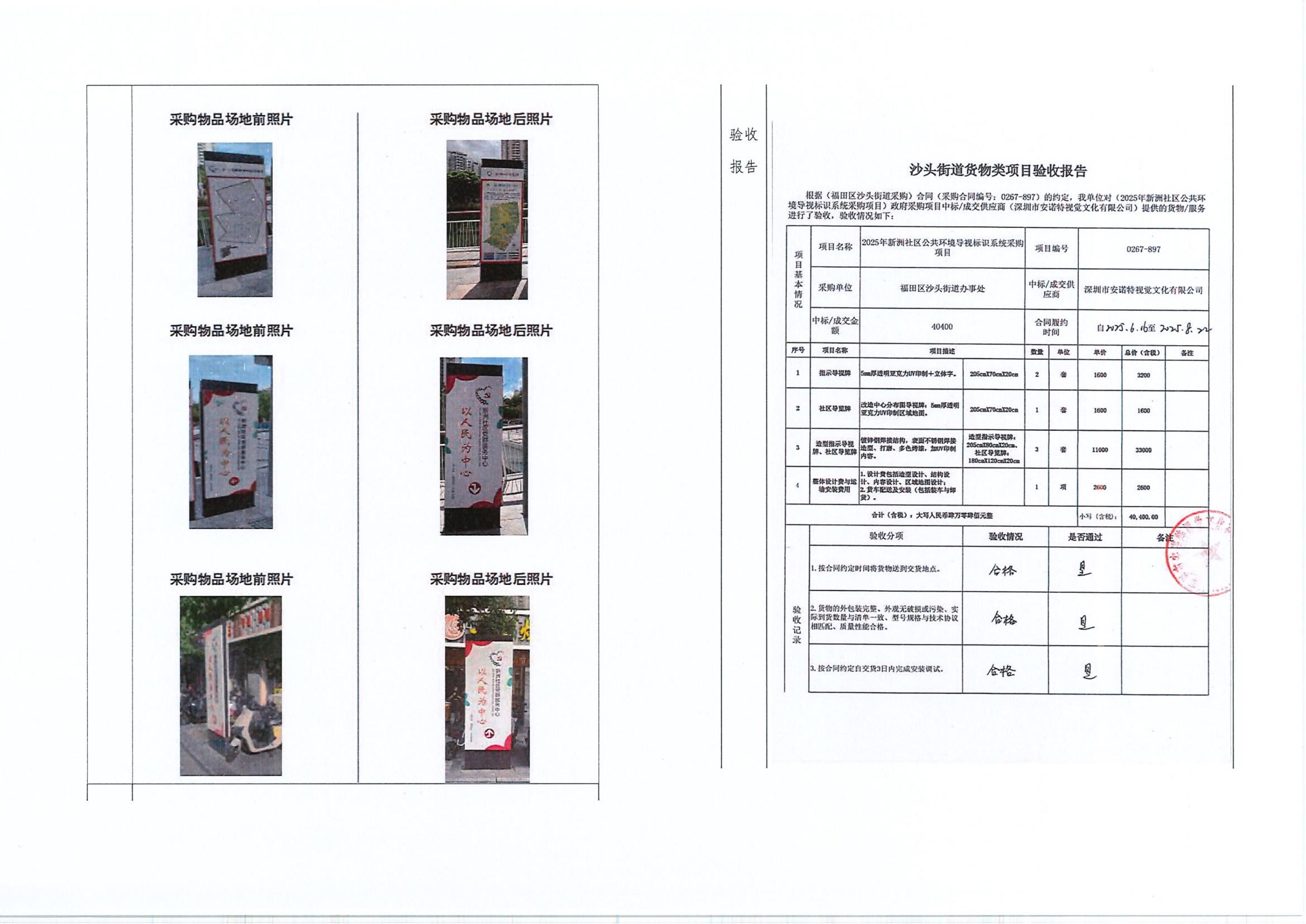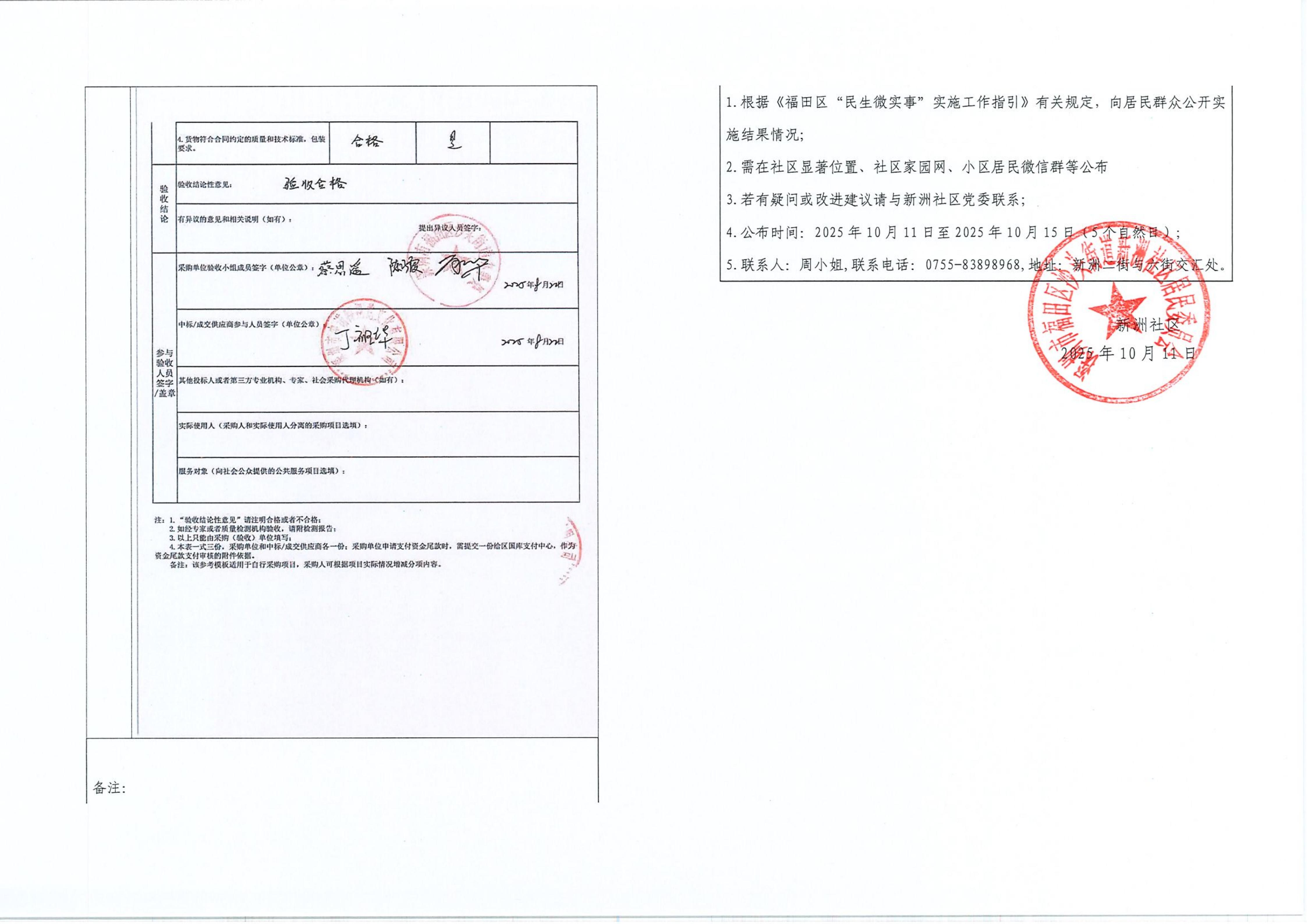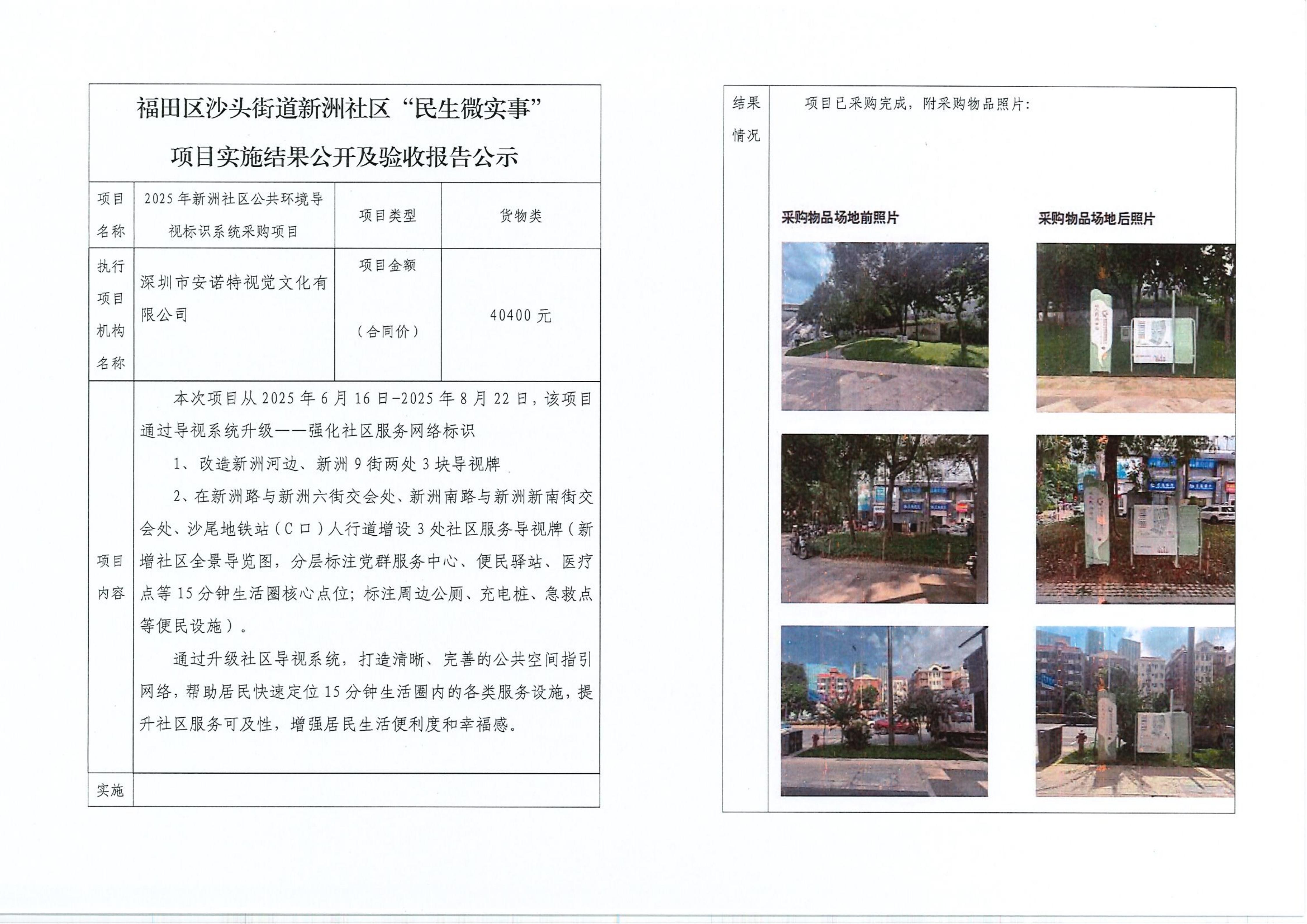 项目公示|福田区沙头街道新洲社区2025年新洲社区公共环境导视标识系统采购项目“民生微实事”项目实施结果公开及验收报告公示