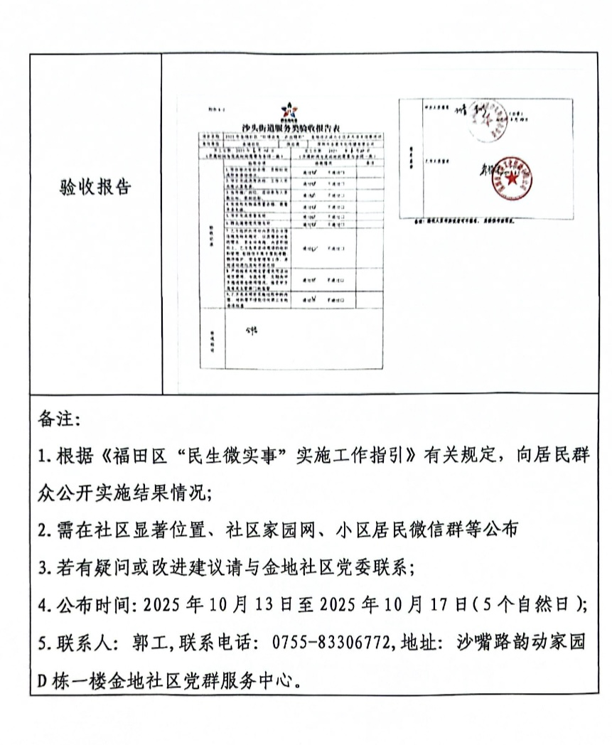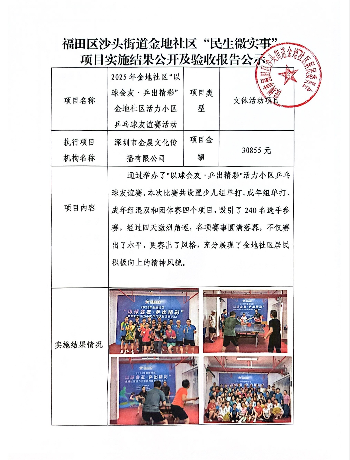 项目公示|福田区沙头街道金地社区2025年“以球会友·乒出精彩”金地社区活力小区乒乓球友谊赛活动“民生微实事”项目实施结果公开及验收报告公示