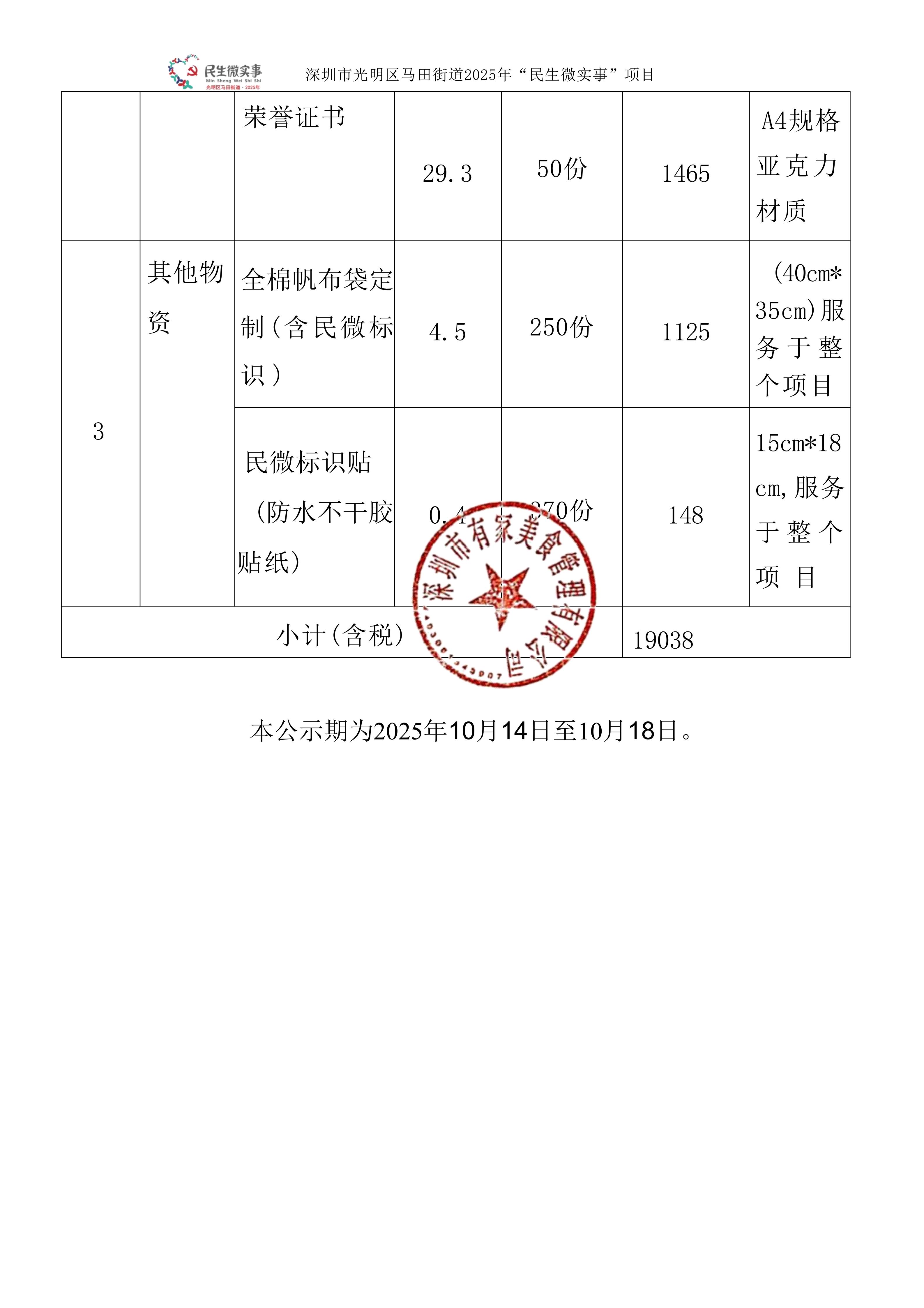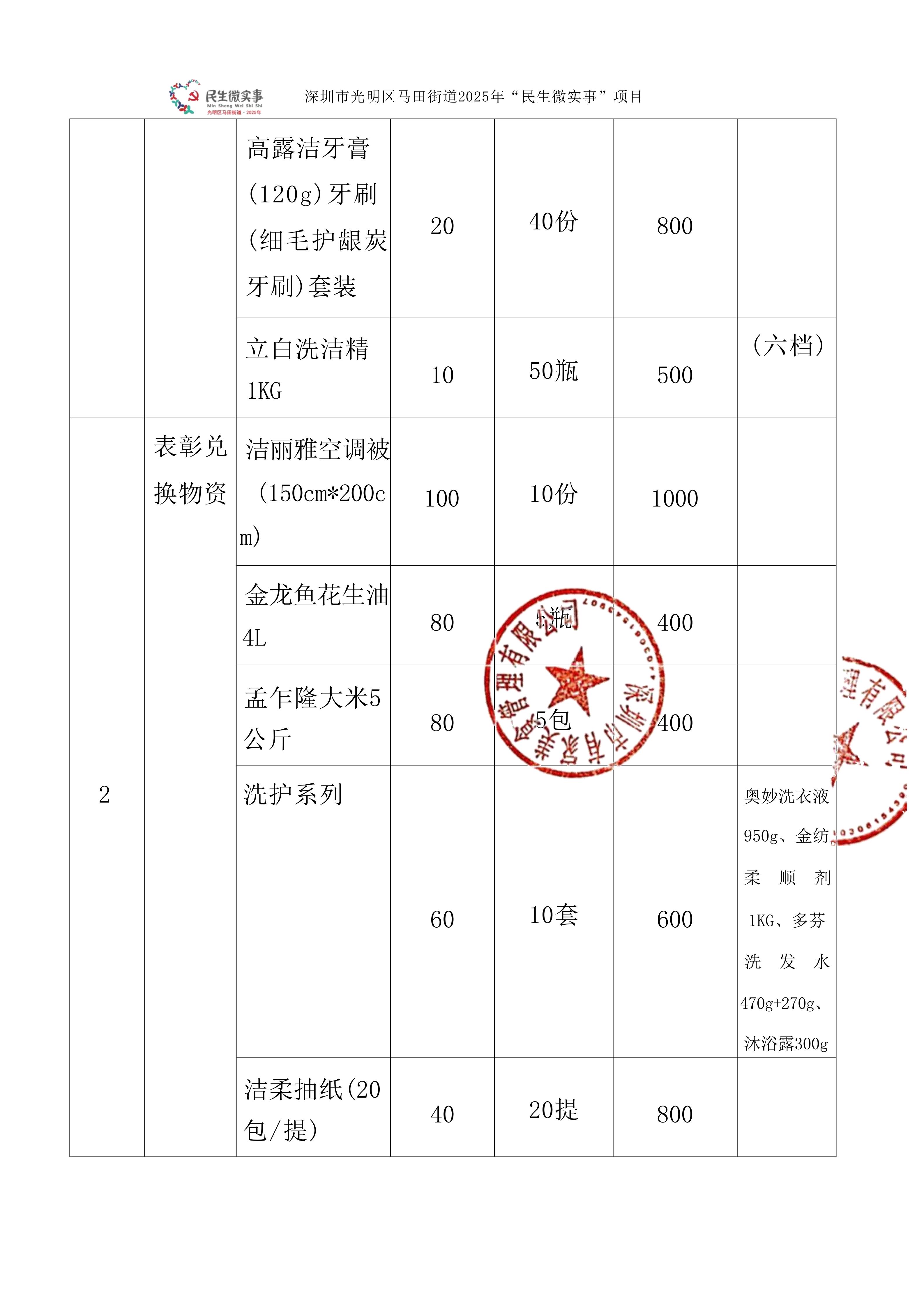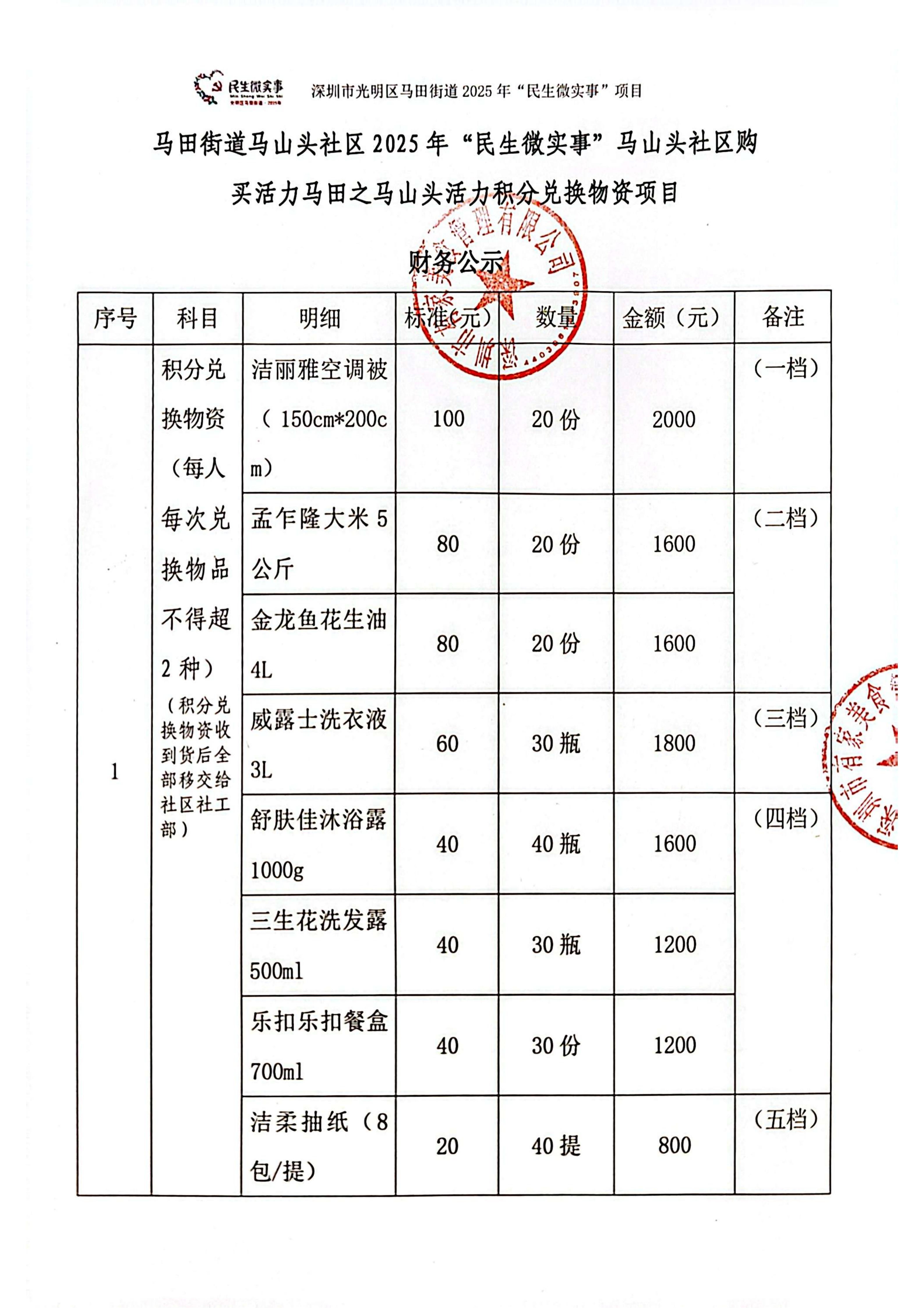 项目公示|光明区马田街道马山头社区关于2025年马山头社区购买活力马田之马山头活力积分兑换物资项目“民生微实事”项目财务公示