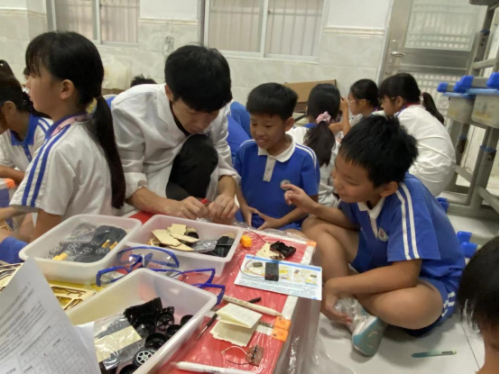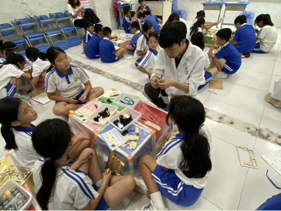 本次活动紧扣提升青少年科学实践技能与创新能力的核心目标,将知识传授与动手操作深度融合。活动伊始,专业指导老师通过生动有趣的讲解,引导孩子们步入电路与能量传动的神秘世界。活动的核心环节——“火星履带爬行器”DIY制作将现场气氛推向高潮。35名小“工程师”投入创作:认真辨认元件,细心连接电路,现场充满了协作讨论声、工具操作声和成功的欢呼声。在指导老师的耐心辅助下,一个个初具雏形的“火星爬行器”陆续在桌面上诞生。