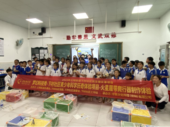 为响应国家提升青少年科学素养的号召,弥补学校科学教育中实践环节薄弱的短板,2025年10月14日下午,由公明街道办事处主办,下村社区党委、社区居委会及工作站承办,华依文化传媒(深圳)有限公司协办的梦幻科技秀——下村社区青少年科学历奇体验项目在下村社区培英文武实验学校开展。该项目聚焦青少年对科学的兴趣需求,通过互动式、游戏化的科学实践活动,激发好奇心,培养创新精神与动手能力,营造“讲科学、爱科学、学科学、用科学”的社区氛围。