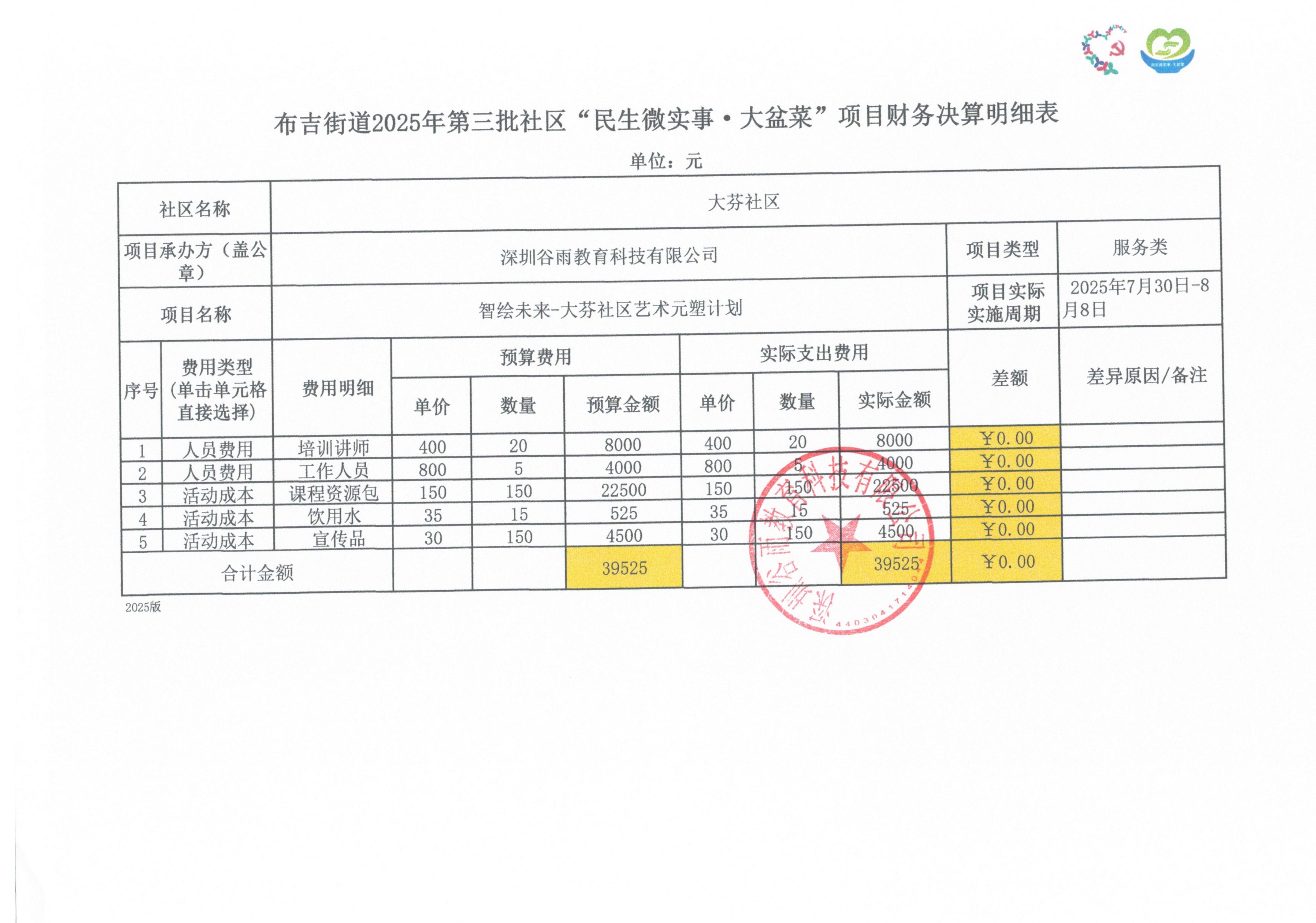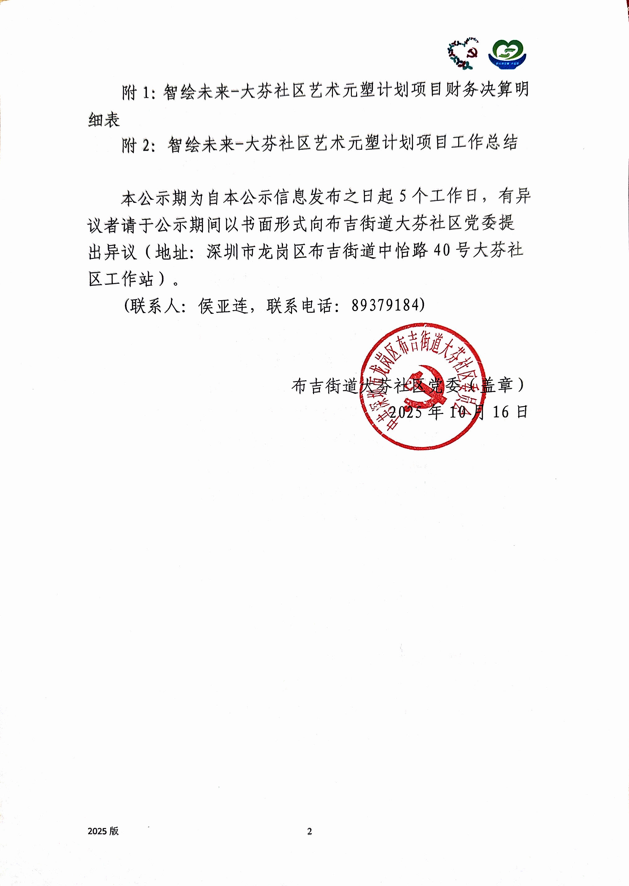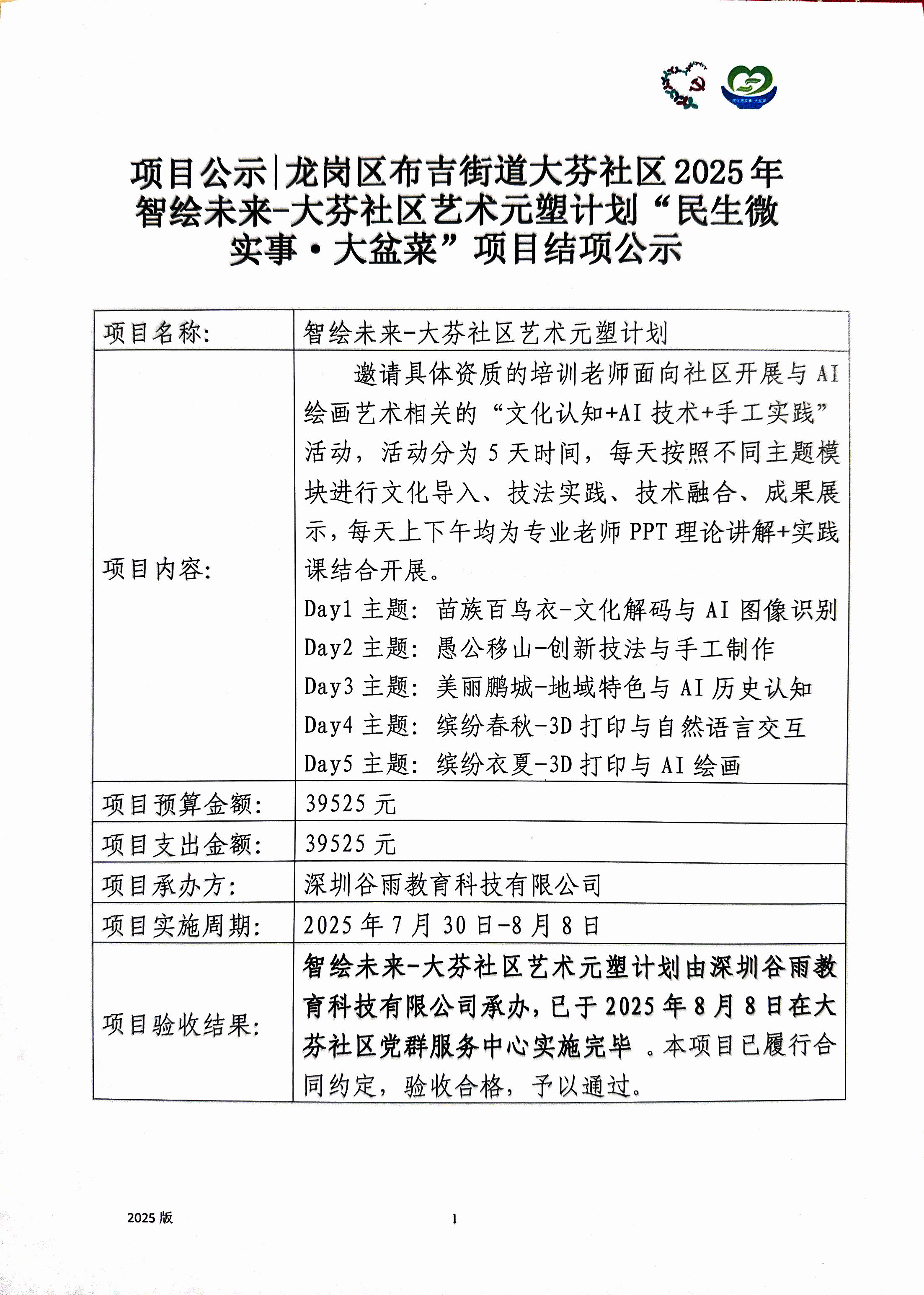 项目公示|龙岗区布吉街道大芬社区2025年智绘未来-大芬社区艺术元塑计划“民生微实事·大盆菜”项目结项公示