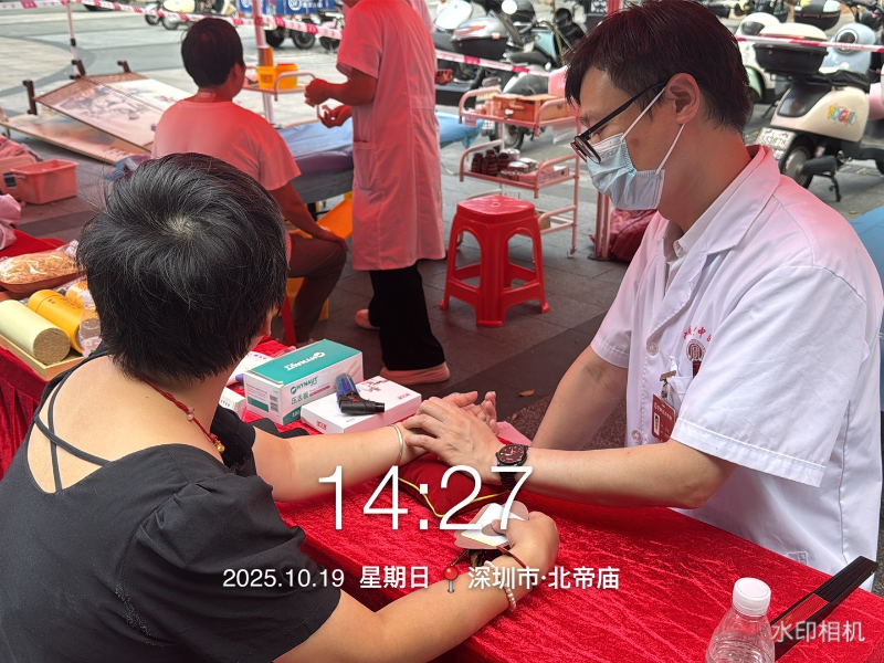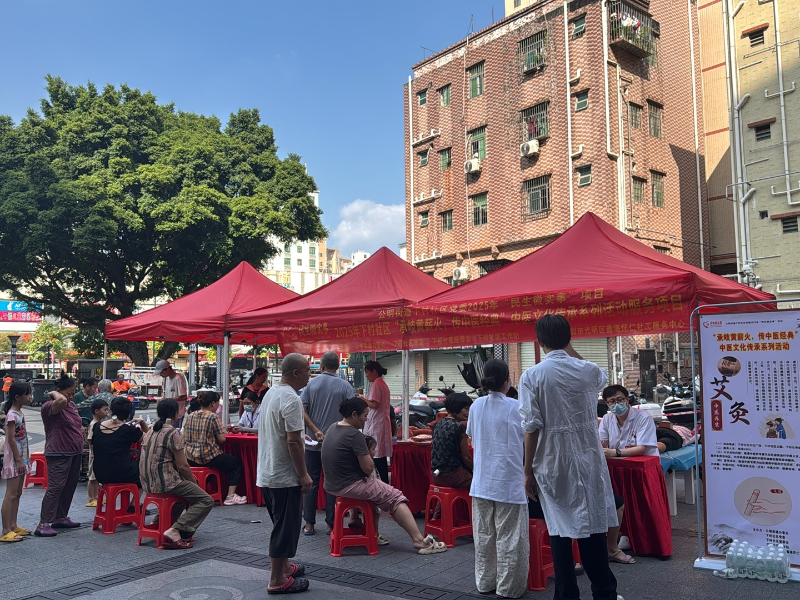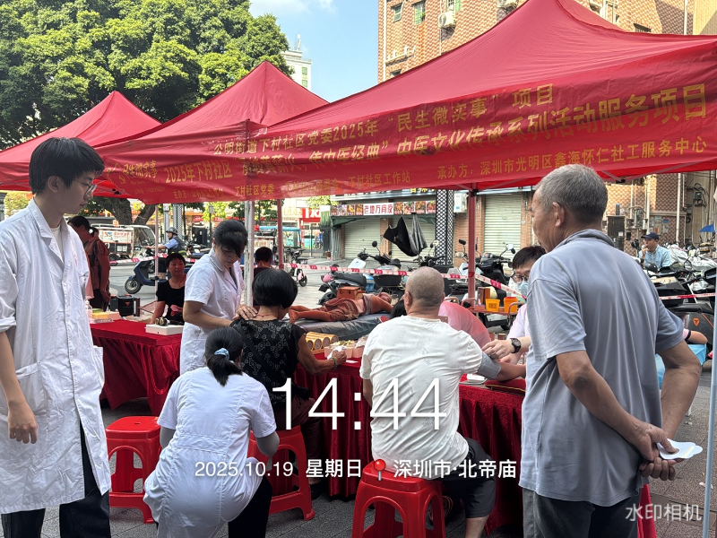 为弘扬中华优秀传统文化,提升居民中医养生保健意识,2025年10月19日下午,“承岐黄薪火,传中医经典”为主题的中医文化传承系列活动最后一场,在下村社区北帝庙广场隆重举行。本次活动吸引了约百名社区居民的热情参与,现场气氛热烈,充满了浓浓的中医药文化氛围。
