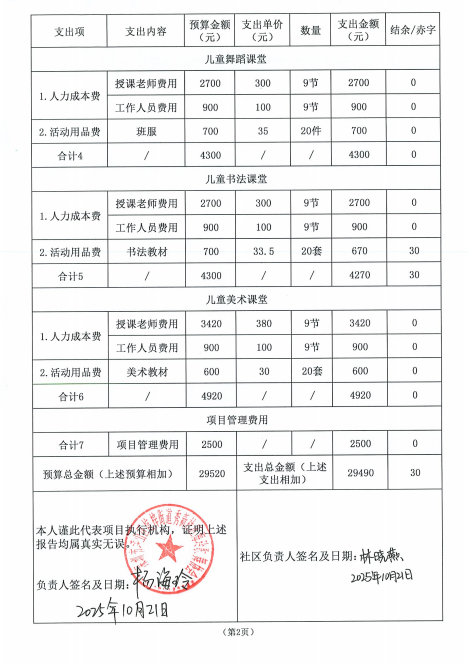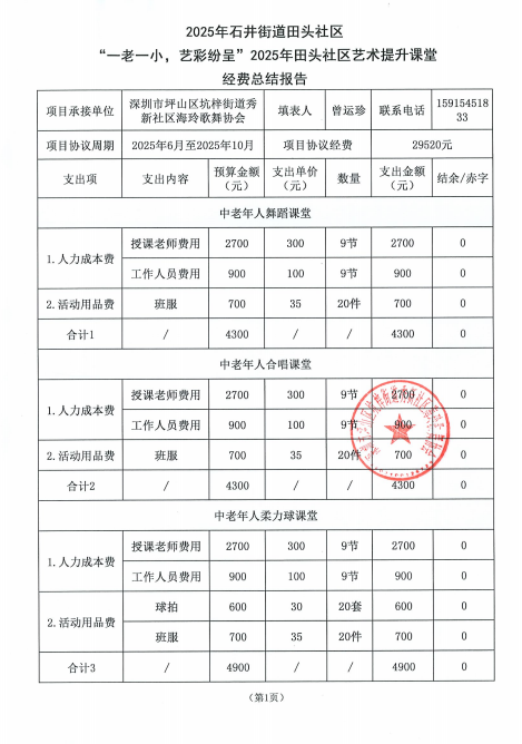 项目公示|坪山区石井街道田头社区“一老一小,艺彩纷呈”2025年田头社区艺术提升课堂“民生微实事”项目经费总结公示