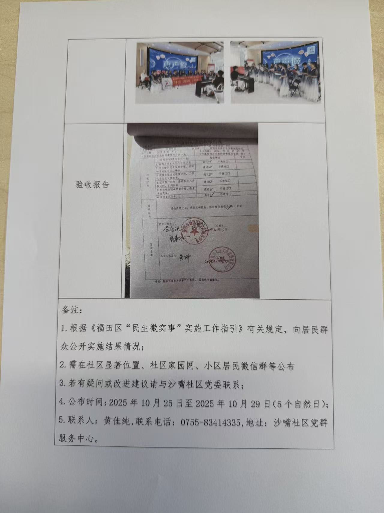 项目公示|福田区沙头街道沙嘴社区2025年沙嘴社区“以歌为友,以声为伴”合唱活动“民生微实事”项目实施结果公开及验收报告公示