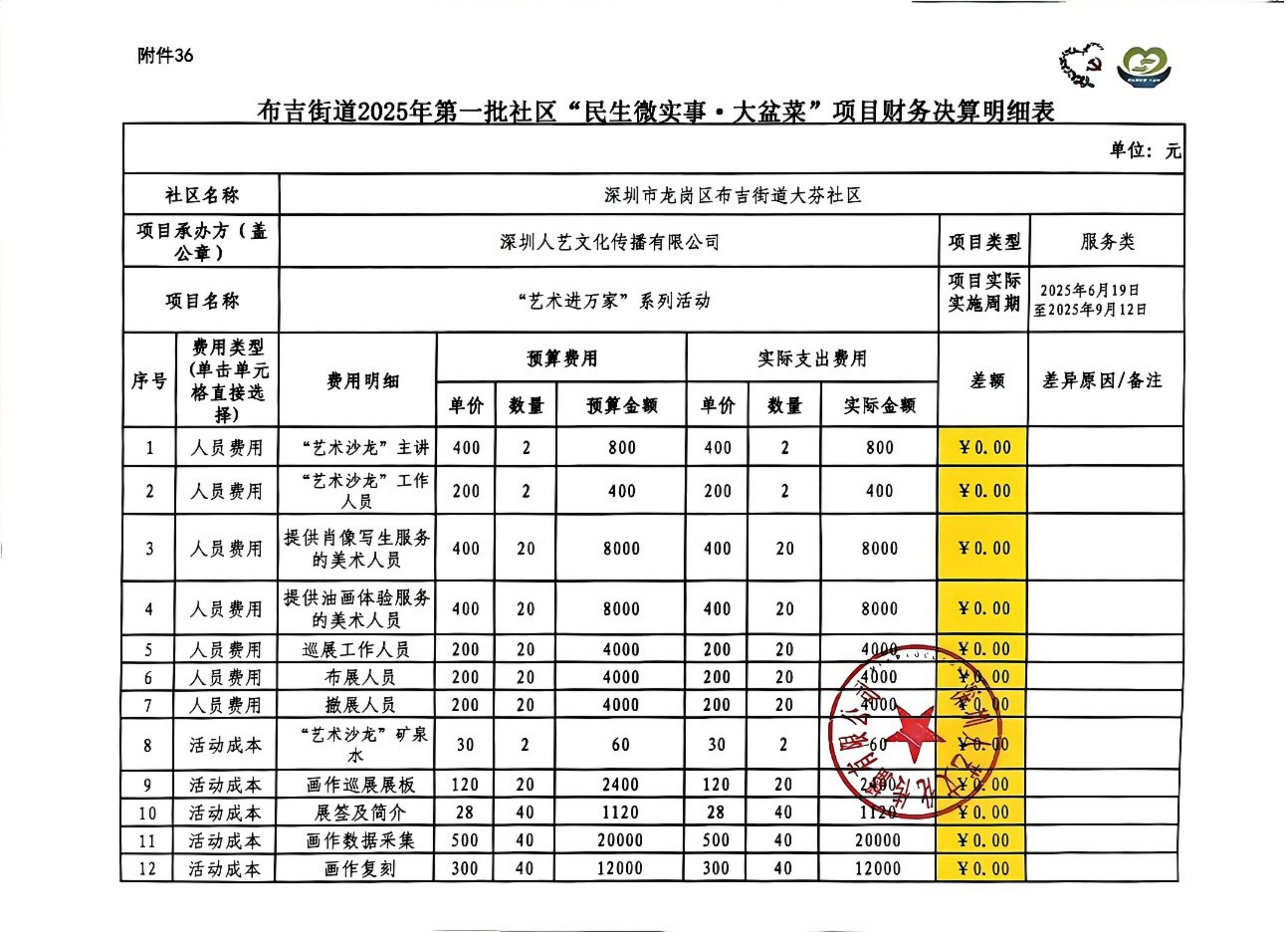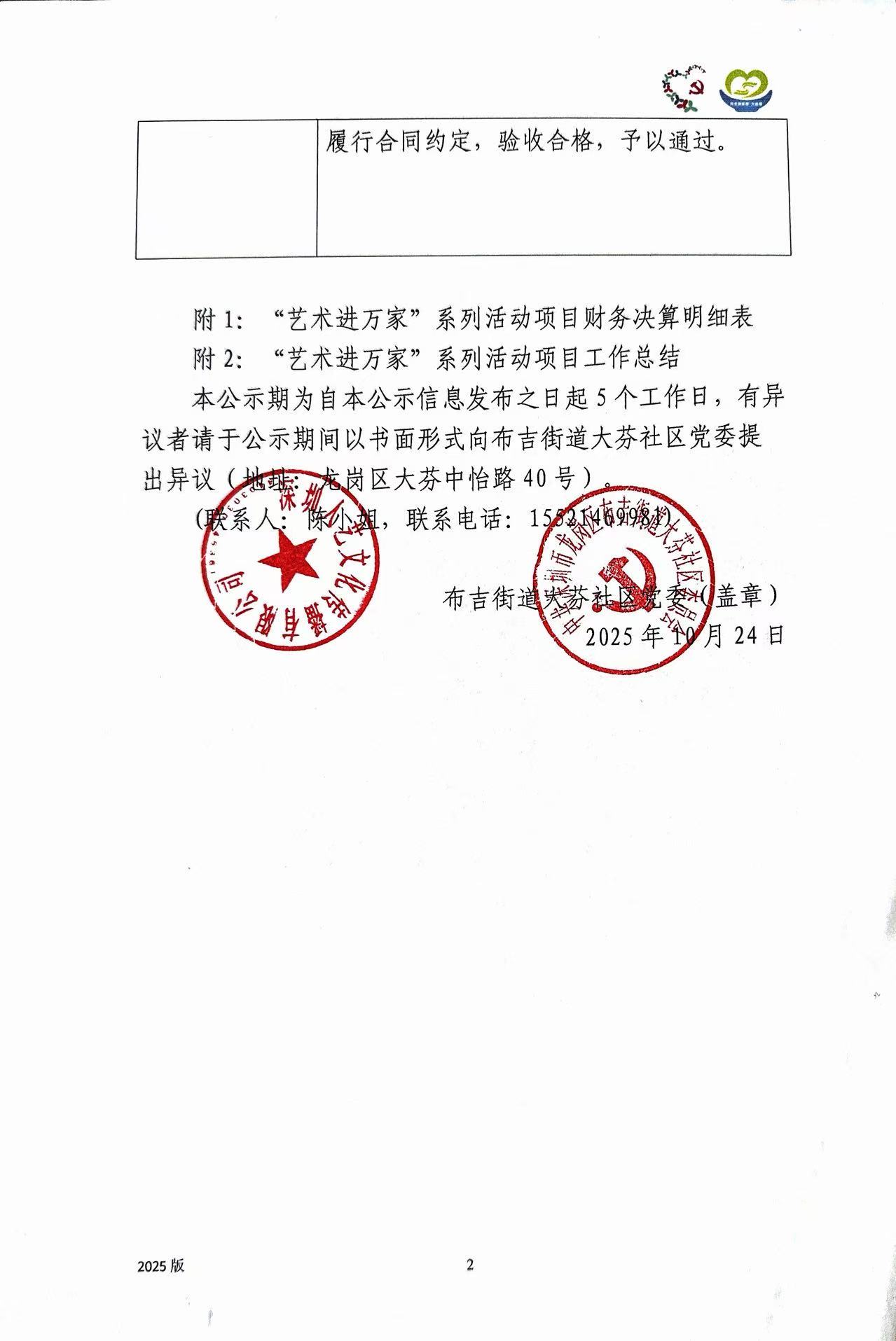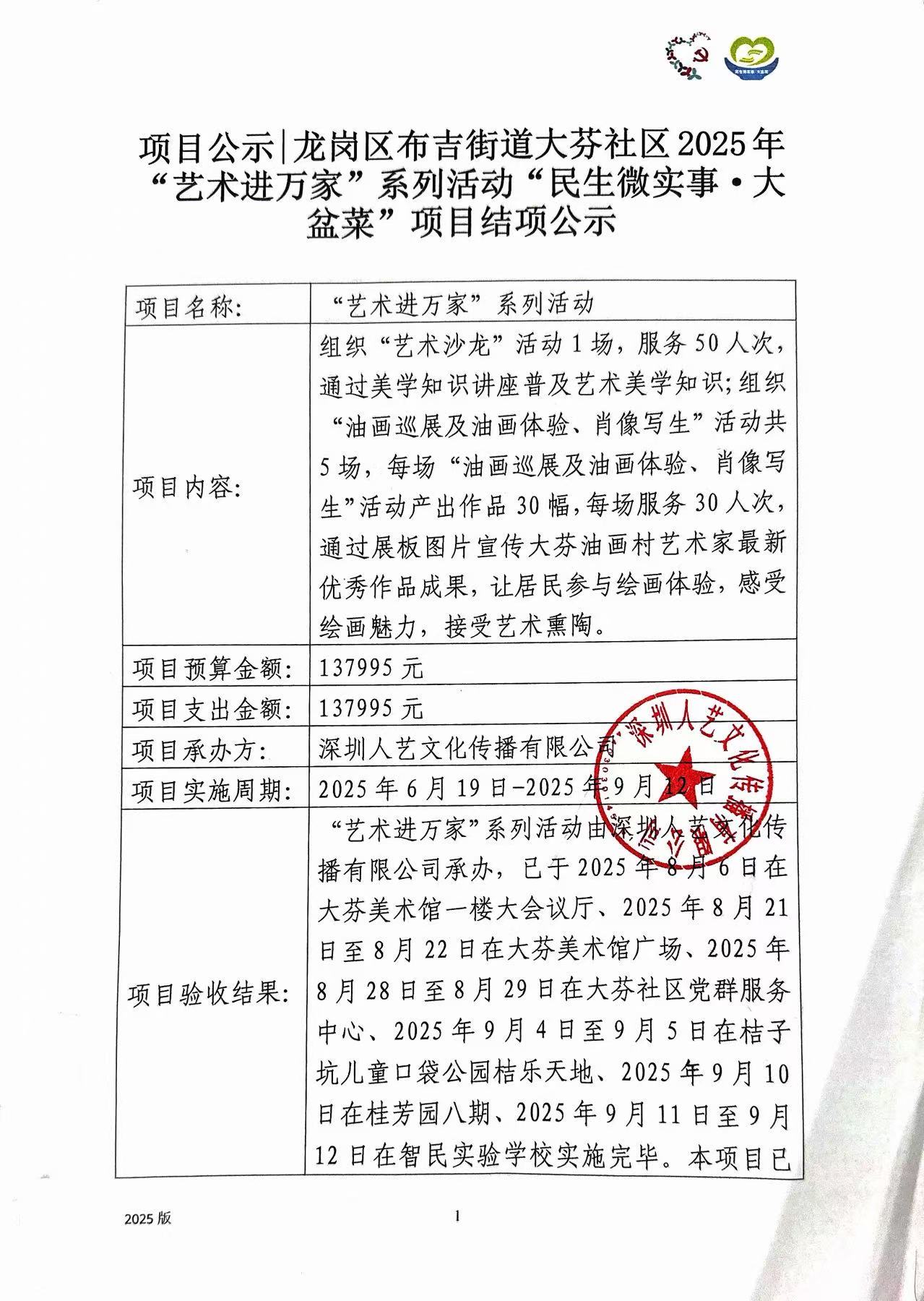 项目公示|龙岗区布吉街道大芬社区2025年“艺术进万家”系列活动“民生微实事·大盆菜”项目结项公示