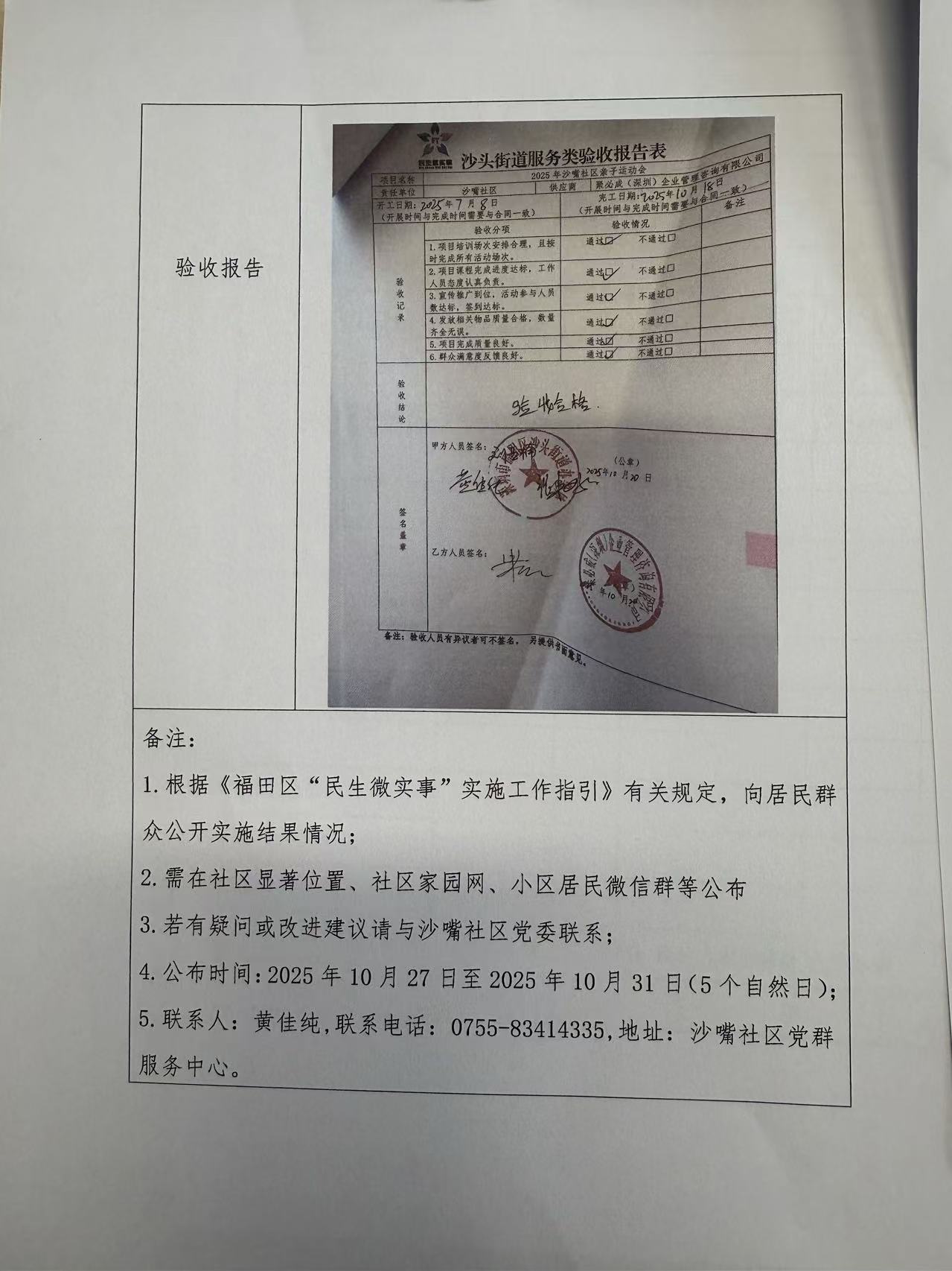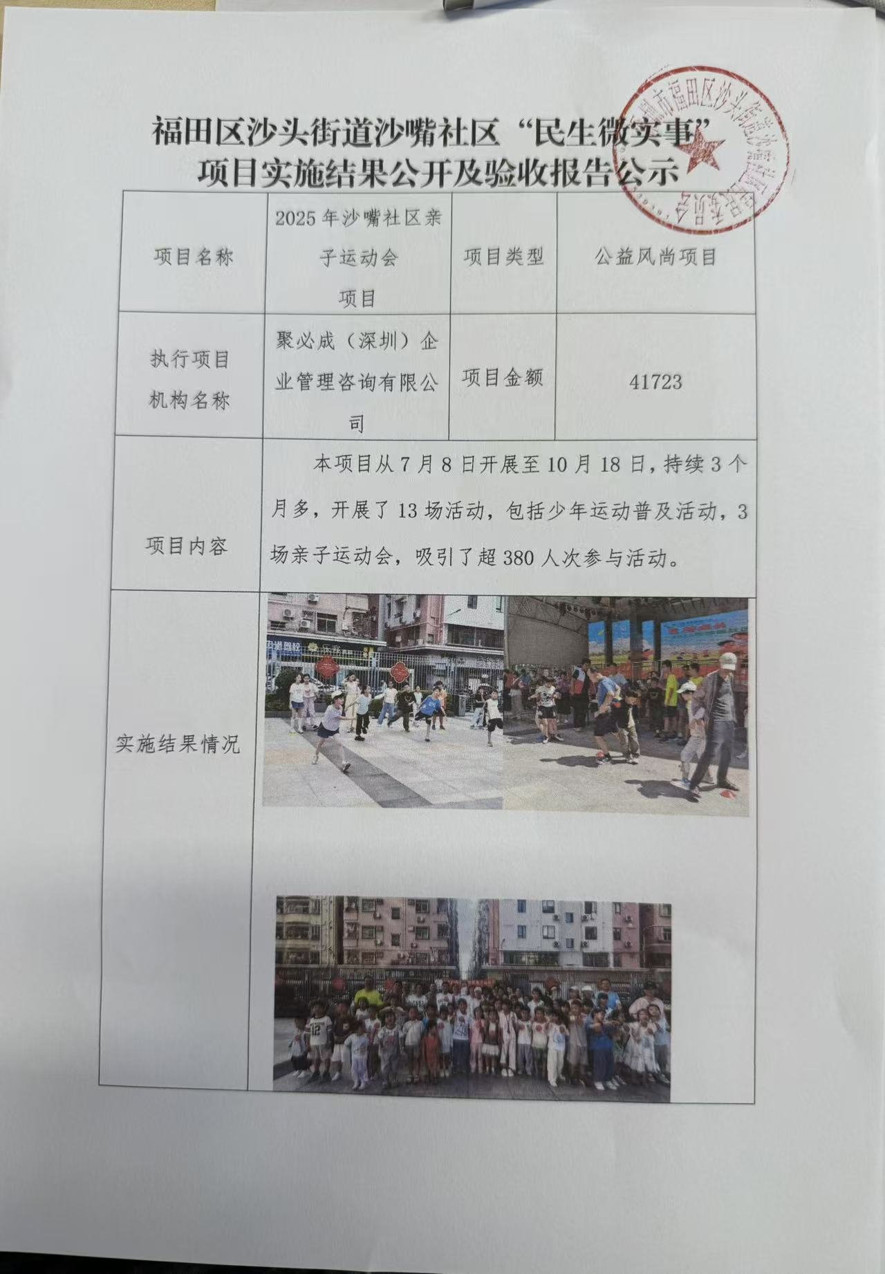 项目公示|福田区沙头街道沙嘴社区2025年沙嘴社区亲子运动会项目“民生微实事”项目实施结果公开及验收报告公示
