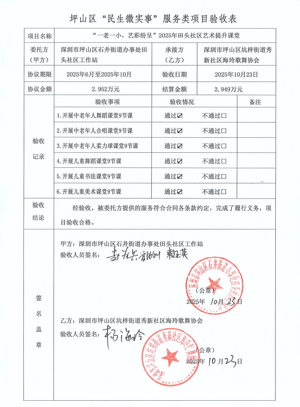坪山区石井街道田头社区“一老一小,艺彩纷呈”2025年田头社区艺术提升课堂“民生微实事”项目验收表.pdf